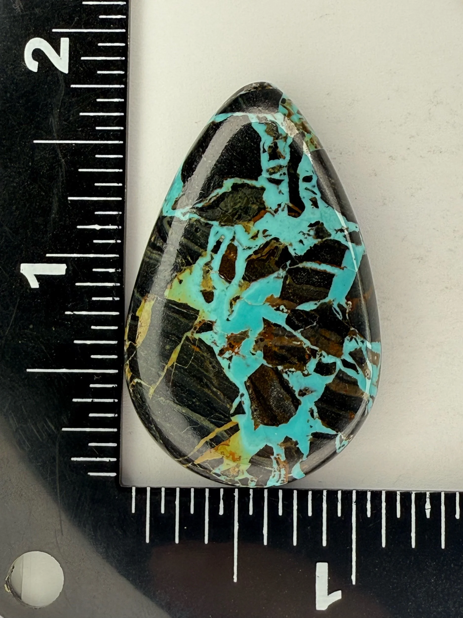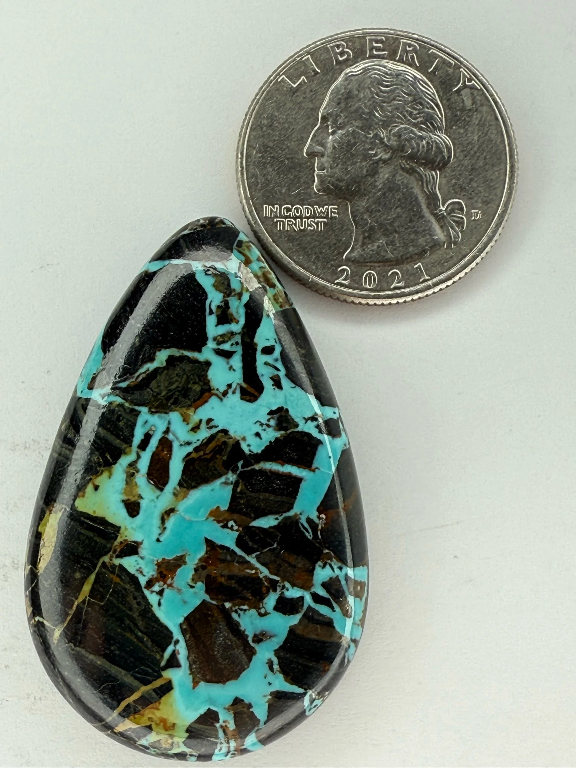 Shop › Blackjack Turquoise TC#494 Image 1 of 2 Image 2 of 2 Blackjack Turquoise TC#494 $180.00 Stabilized Blackjack Turquoise cabochon. Backed with black epoxy and ready to be set in jewelry. Weight 63 carats. Add To Cart Added! Stabilized Blackjack Turquoise cabochon. Backed with black epoxy and ready to be set in jewelry. Weight 63 carats.