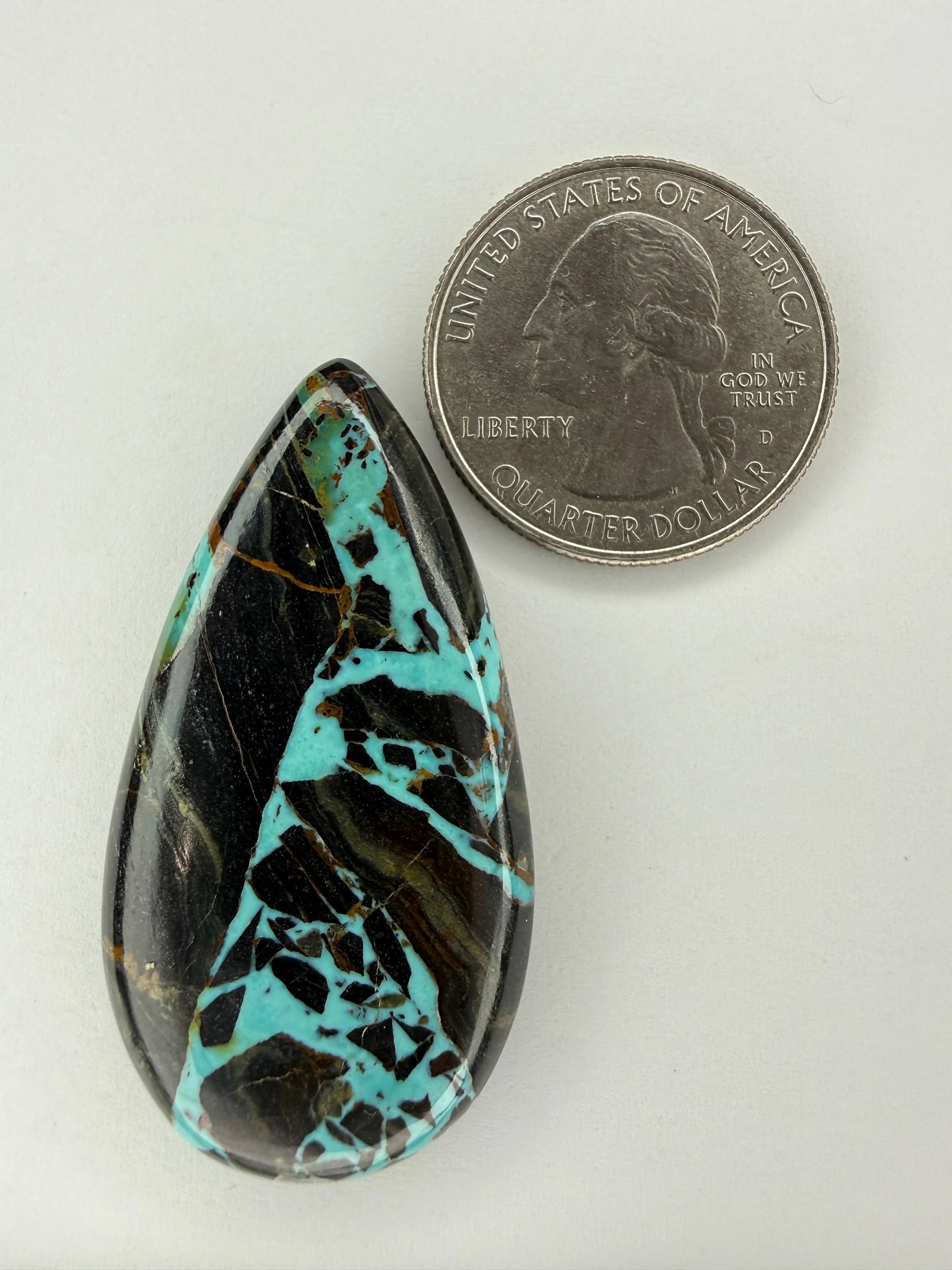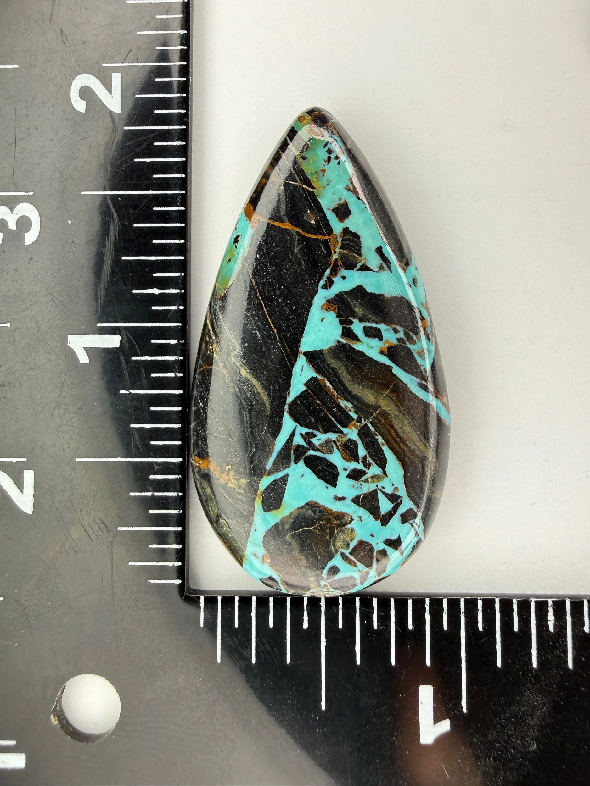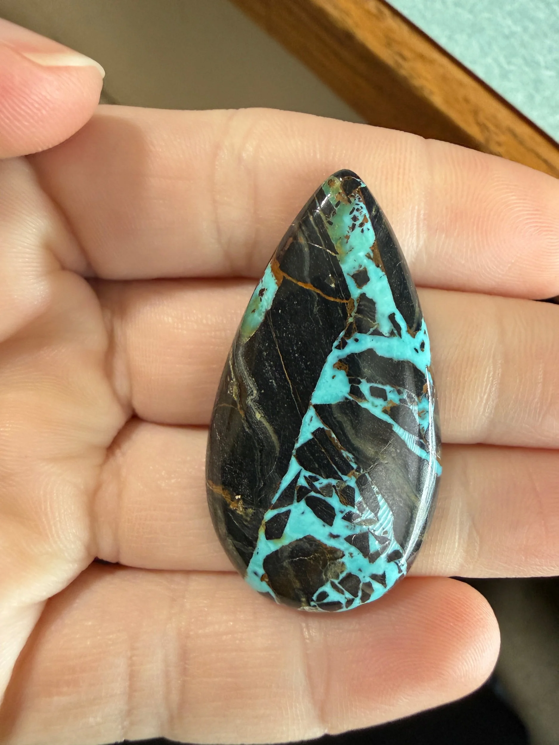 Shop › Blackjack Turquoise TC#231 Image 1 of 3 Image 2 of 3 Image 3 of 3 Blackjack Turquoise TC#231 $100.00 Natural Blackjack Turquoise cabochon. Backed with black epoxy and ready to be set in jewelry. Weight 52 carats. Add To Cart Added! Natural Blackjack Turquoise cabochon. Backed with black epoxy and ready to be set in jewelry. Weight 52 carats.