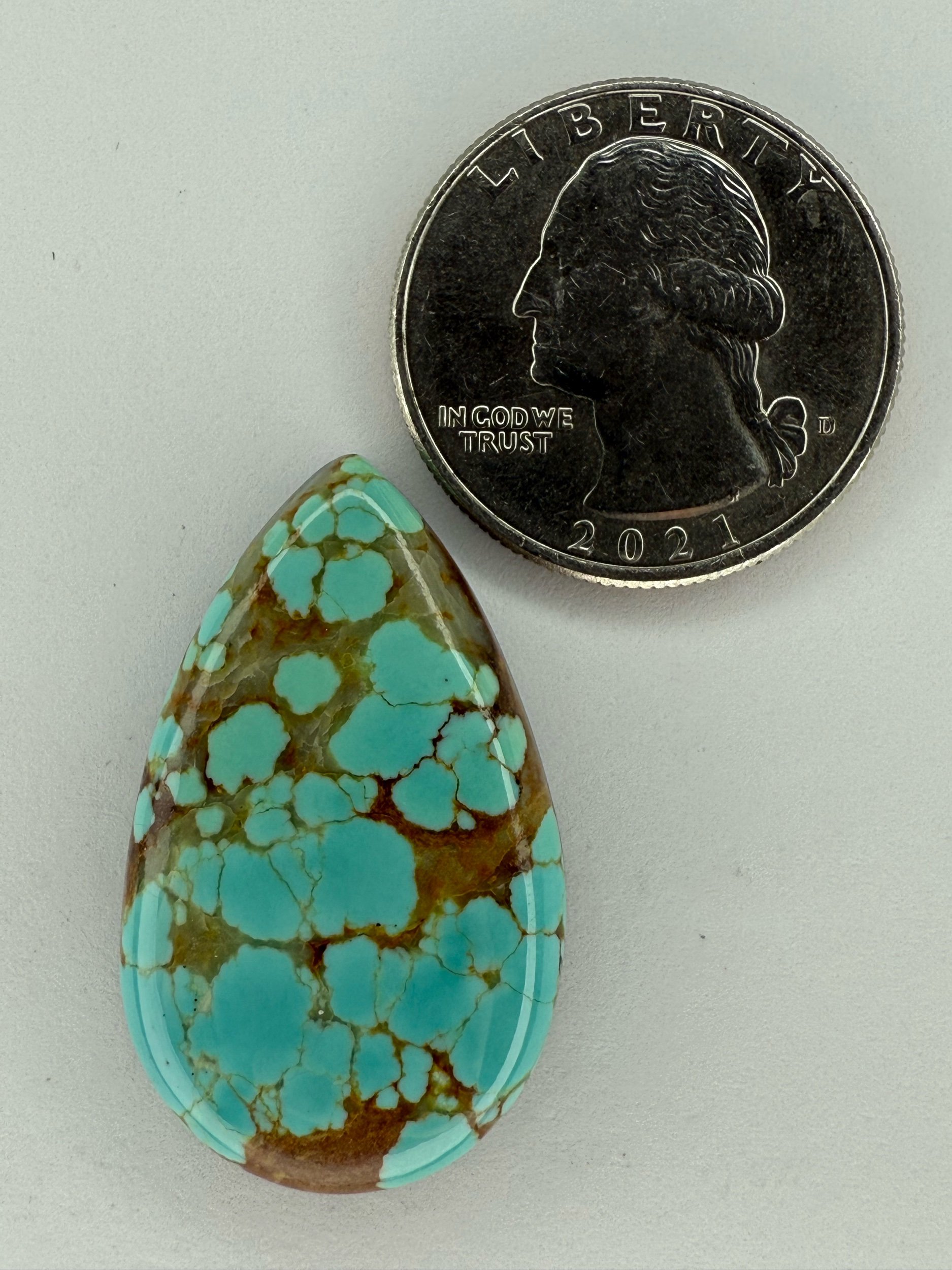 Shop › No.8 Turquoise TC#552 Image 1 of 2 Image 2 of 2 No.8 Turquoise TC#552 $50.00 Stabilized No.8 turquoise cabochon. Backed with black epoxy and ready to be set in jewelry. Weight 26 carats. Add To Cart Added! Stabilized No.8 turquoise cabochon. Backed with black epoxy and ready to be set in jewelry. Weight 26 carats.