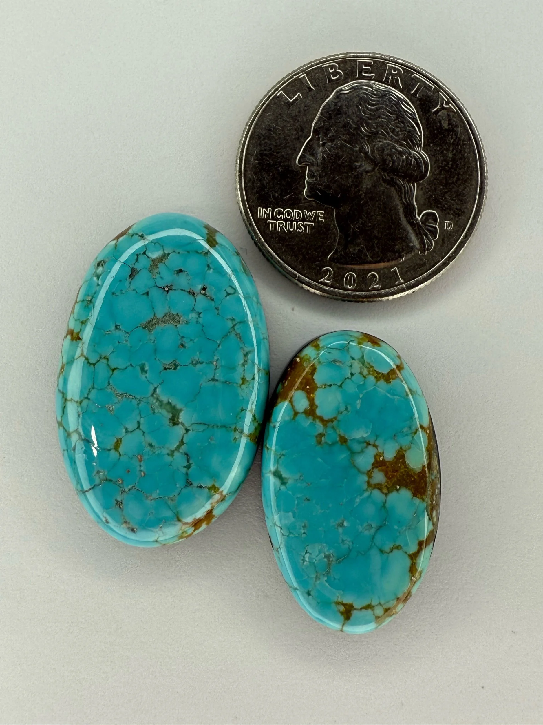 Shop › No.8 Turquoise TC#522 Image 1 of 2 Image 2 of 2 No.8 Turquoise TC#522 $80.00 Stabilized No.8 turquoise cabochon pair. Backed with black epoxy and ready to be set in jewelry. Weight 41 carats. Add To Cart Added! Stabilized No.8 turquoise cabochon pair. Backed with black epoxy and ready to be set in jewelry. Weight 41 carats.