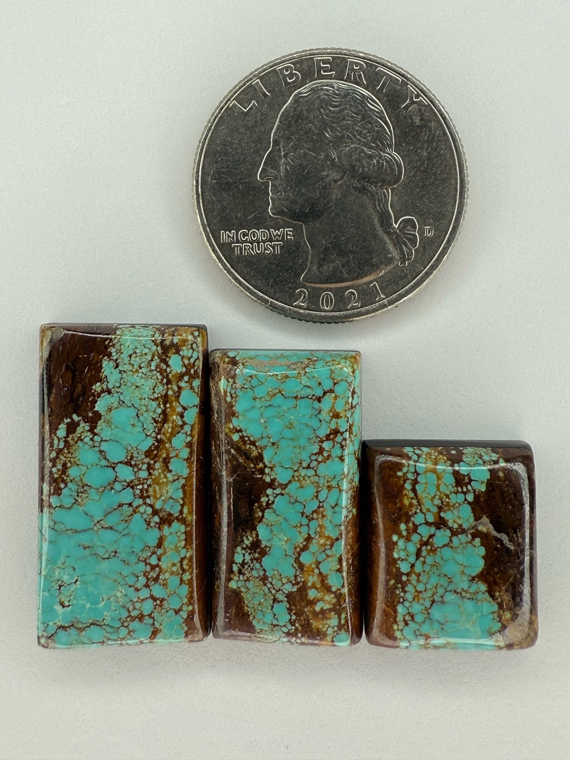 Shop › No.8 Turquoise TC#526 Image 1 of 2 Image 2 of 2 No.8 Turquoise TC#526 $80.00 Stabilized No.8 turquoise cabochon group. Backed with black epoxy and ready to be set in jewelry. Weight 46 carats. Add To Cart Added! Stabilized No.8 turquoise cabochon group. Backed with black epoxy and ready to be set in jewelry. Weight 46 carats.