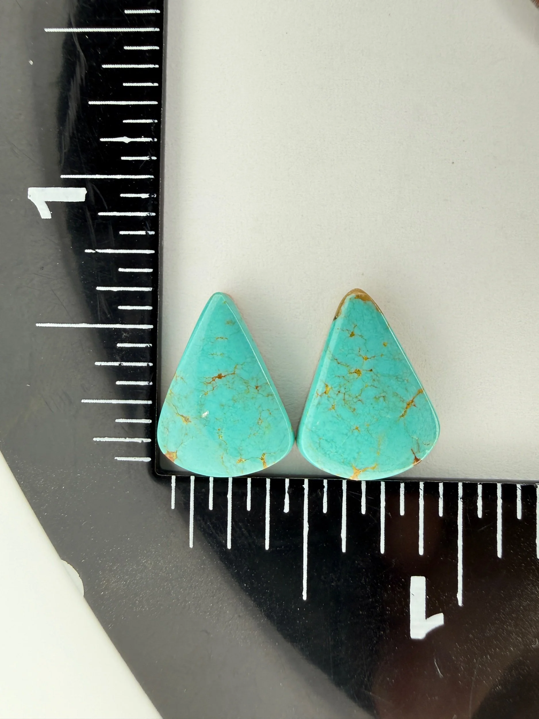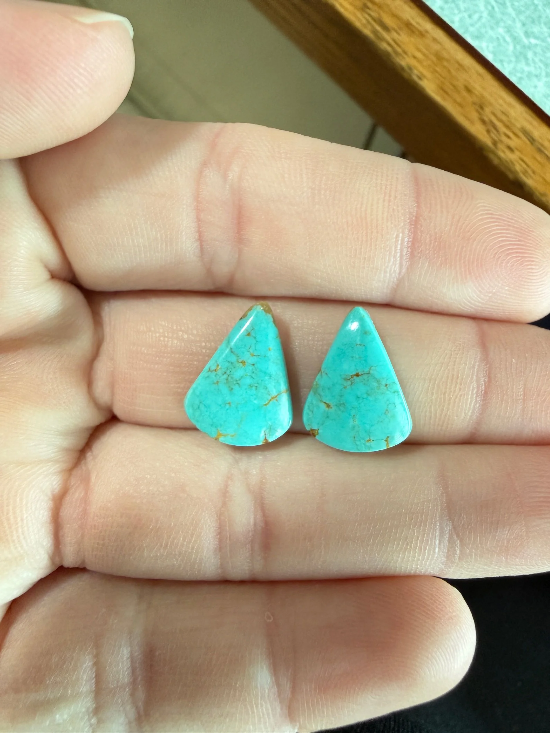 Shop › Chilean Turquoise TC#57 Image 1 of 3 Image 2 of 3 Image 3 of 3 Chilean Turquoise TC#57 $20.00 Stabilized Chilean turquoise cabochon pair. Backed with epoxy and ready to be set in jewelry. Weight 8 carats. Add To Cart Added! Stabilized Chilean turquoise cabochon pair. Backed with epoxy and ready to be set in jewelry. Weight 8 carats.
