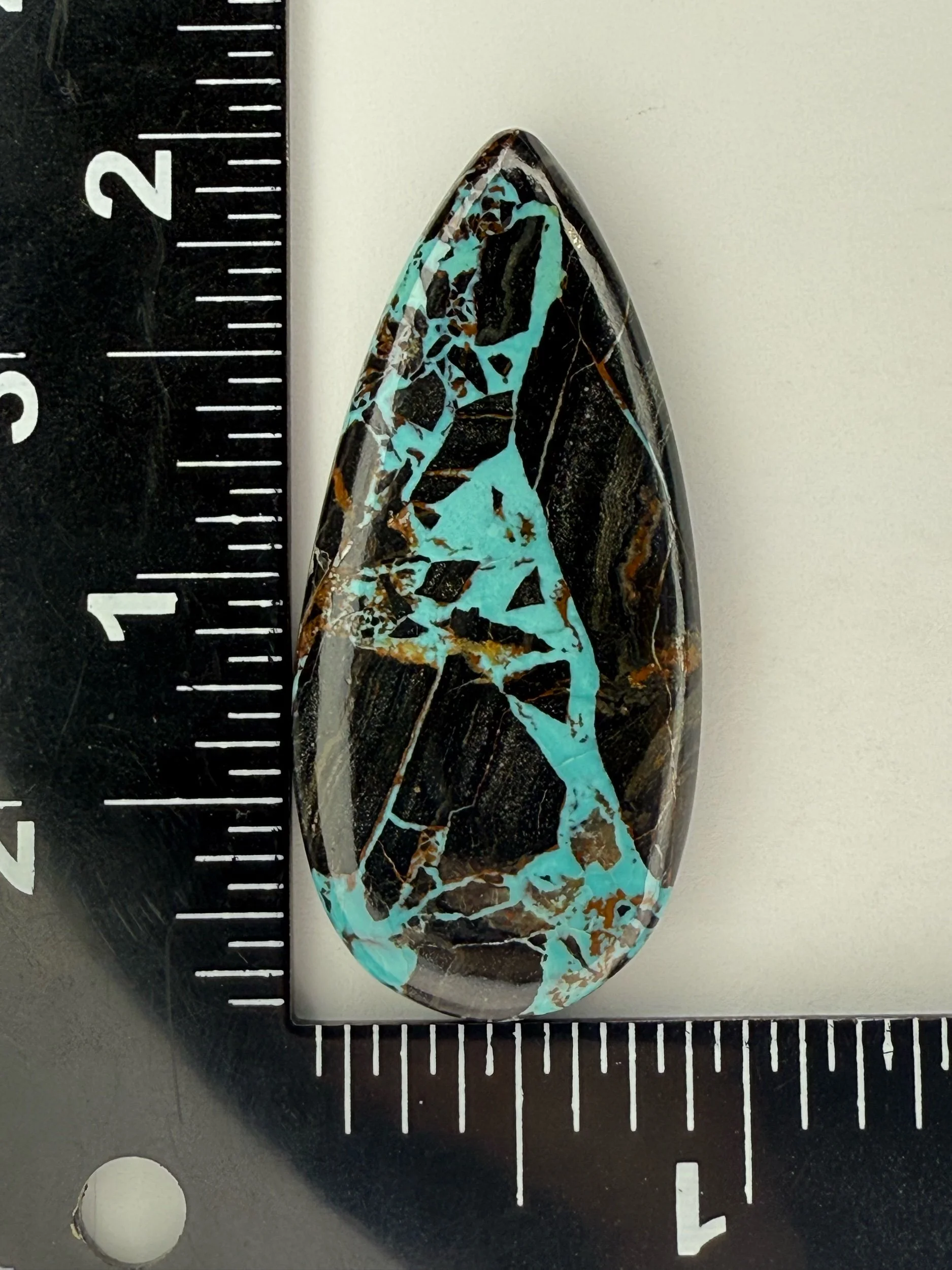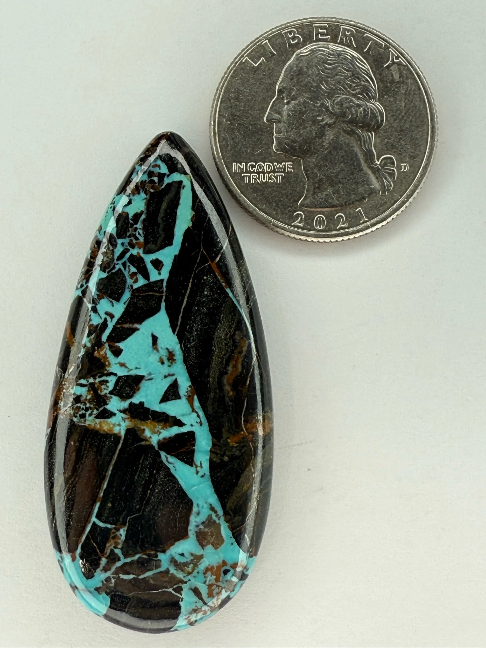 Shop › Blackjack Turquoise TC#128 Image 1 of 2 Image 2 of 2 Blackjack Turquoise TC#128 $150.00 Stabilized Blackjack Turquoise cabochon. Backed with black epoxy and ready to be set in jewelry. Weight 53 carats. Add To Cart Added! Stabilized Blackjack Turquoise cabochon. Backed with black epoxy and ready to be set in jewelry. Weight 53 carats.