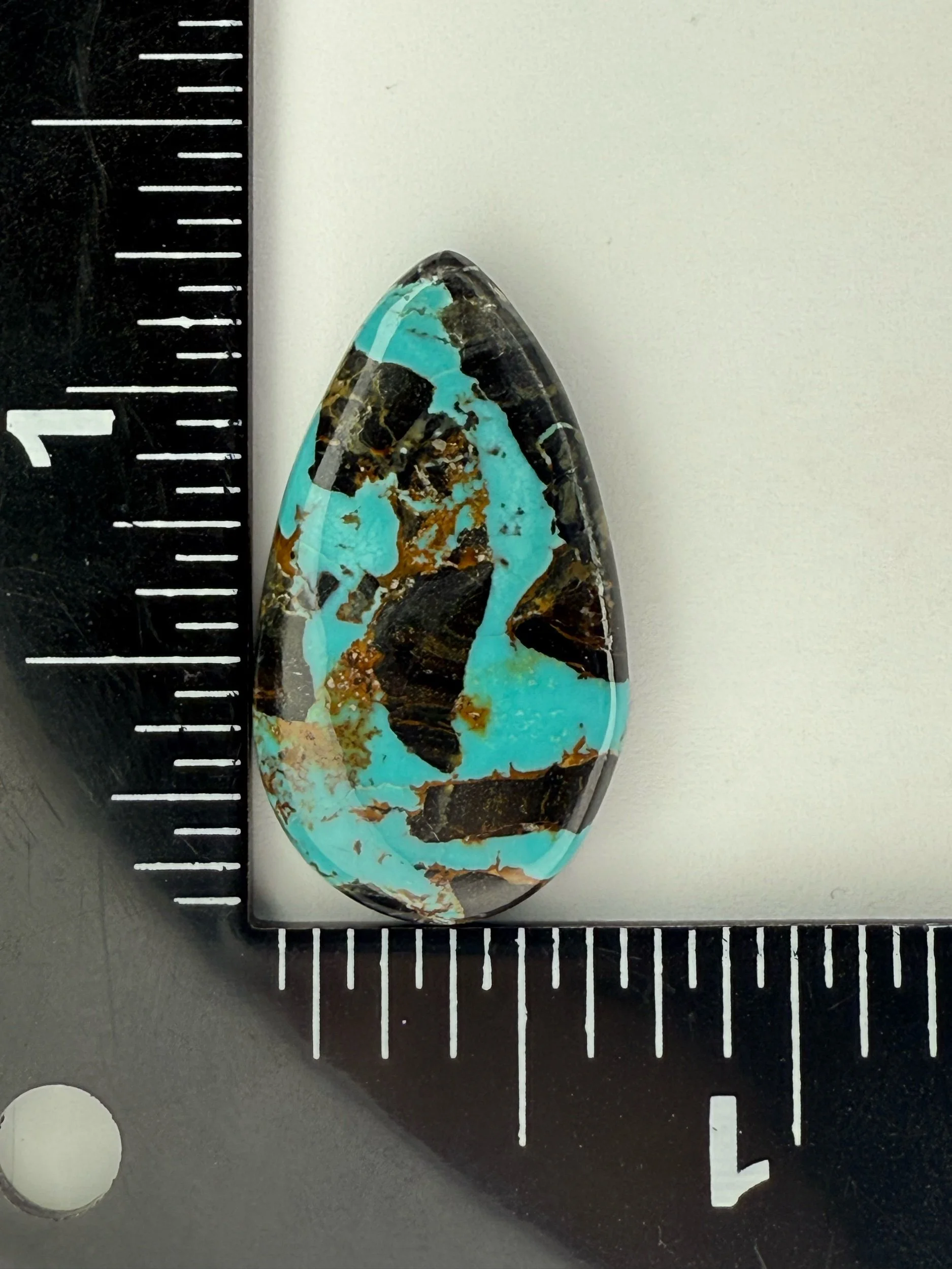 Shop › Blackjack Turquoise TC#44 Image 1 of 2 Image 2 of 2 Blackjack Turquoise TC#44 $60.00 Stabilized Blackjack Turquoise cabochon. Backed with black epoxy and ready to be set in jewelry. Weight 20 carats. Add To Cart Added! Stabilized Blackjack Turquoise cabochon. Backed with black epoxy and ready to be set in jewelry. Weight 20 carats.