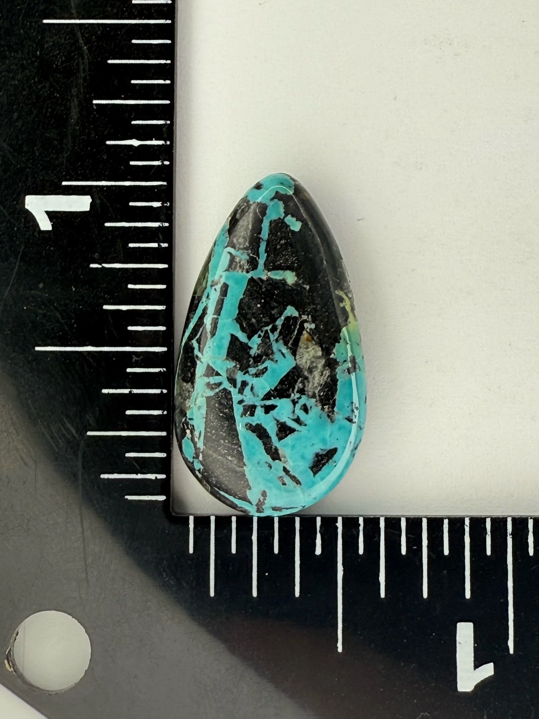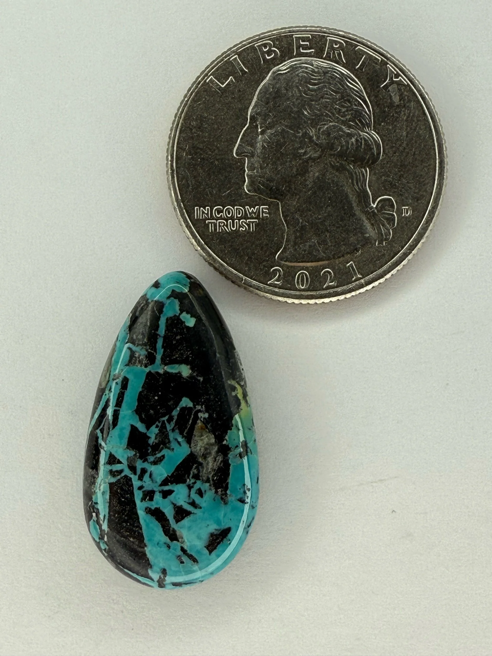 Shop › Blackjack Turquoise TC#333 Image 1 of 2 Image 2 of 2 Blackjack Turquoise TC#333 $45.00 sold out Stabilized Blackjack Turquoise cabochon. Backed with black epoxy and ready to be set in jewelry. Weight 16 carats. Sold Out Added! Stabilized Blackjack Turquoise cabochon. Backed with black epoxy and ready to be set in jewelry. Weight 16 carats.