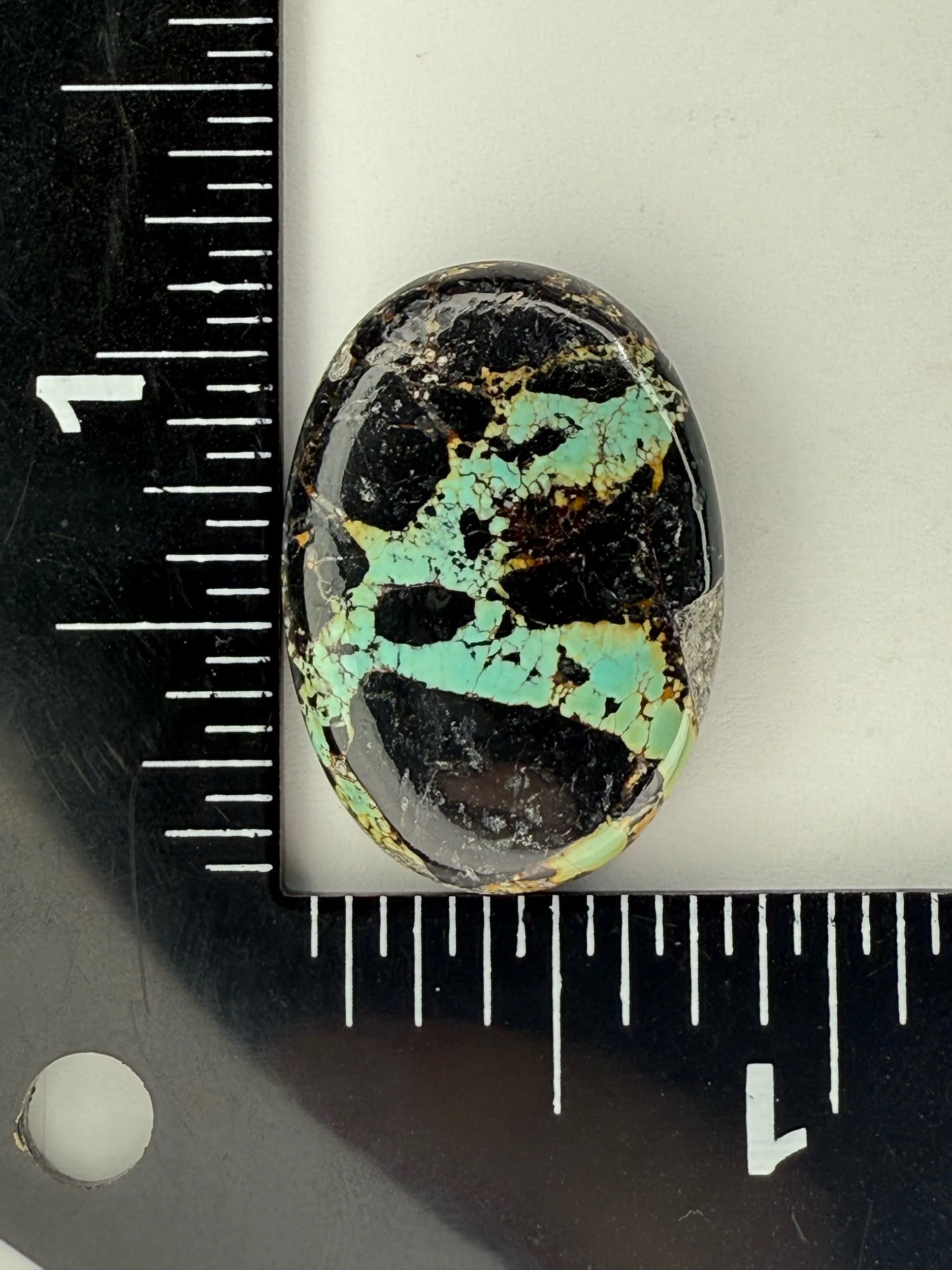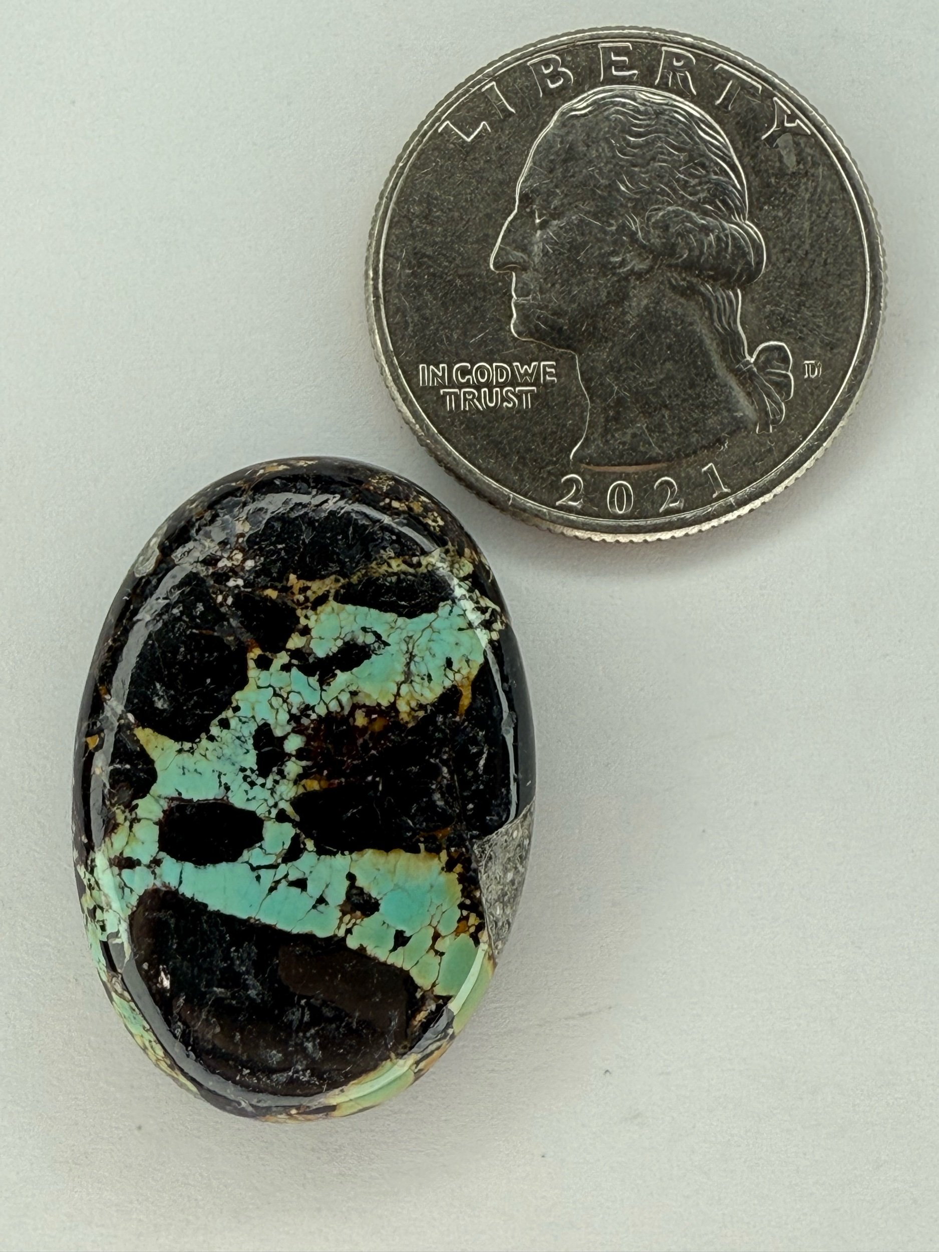 Shop › Blackjack Turquoise TC#199 Image 1 of 2 Image 2 of 2 Blackjack Turquoise TC#199 $90.00 Stabilized Blackjack Turquoise cabochon. Backed with black epoxy and ready to be set in jewelry. Weight 31 carats. Add To Cart Added! Stabilized Blackjack Turquoise cabochon. Backed with black epoxy and ready to be set in jewelry. Weight 31 carats.