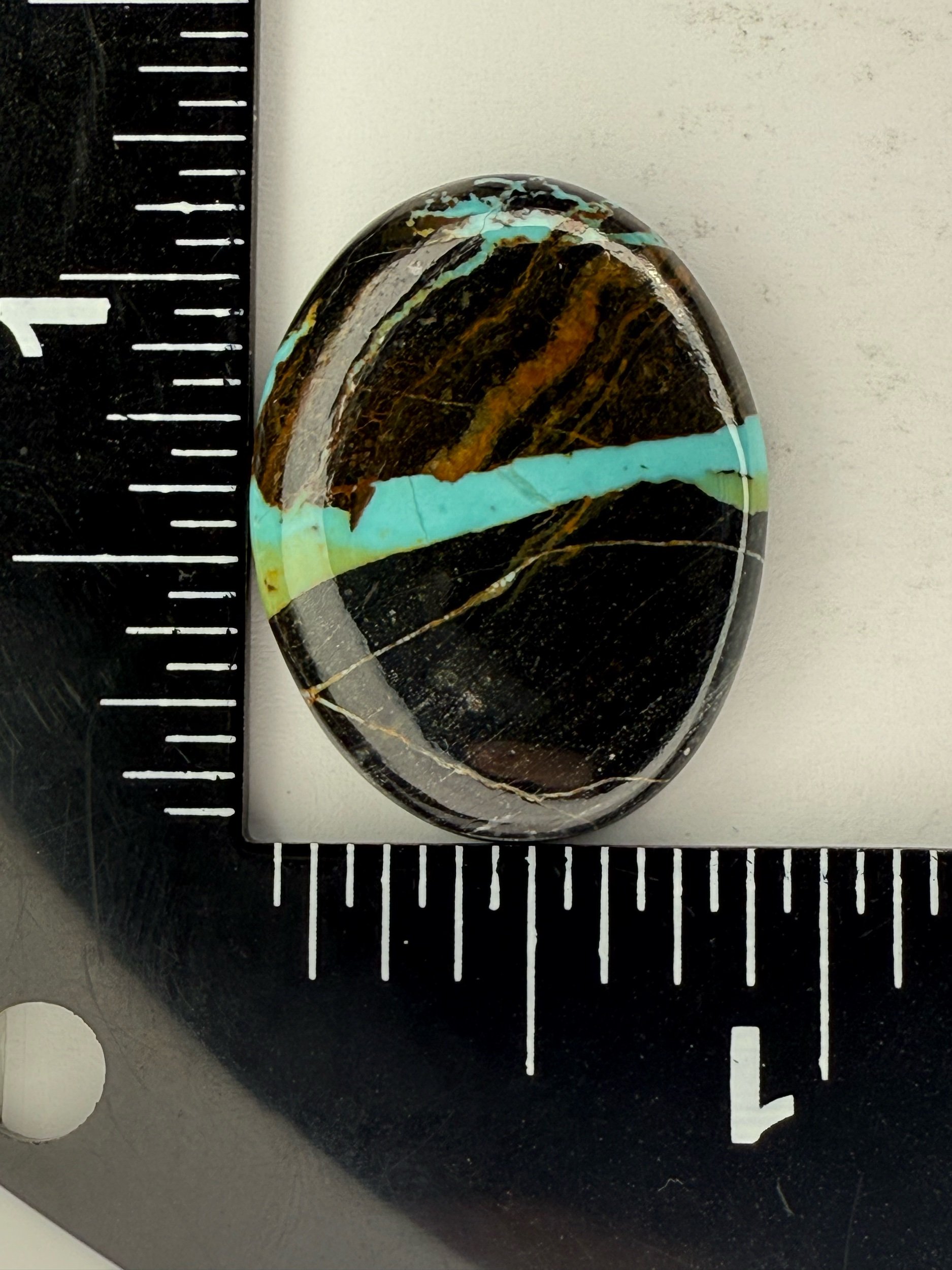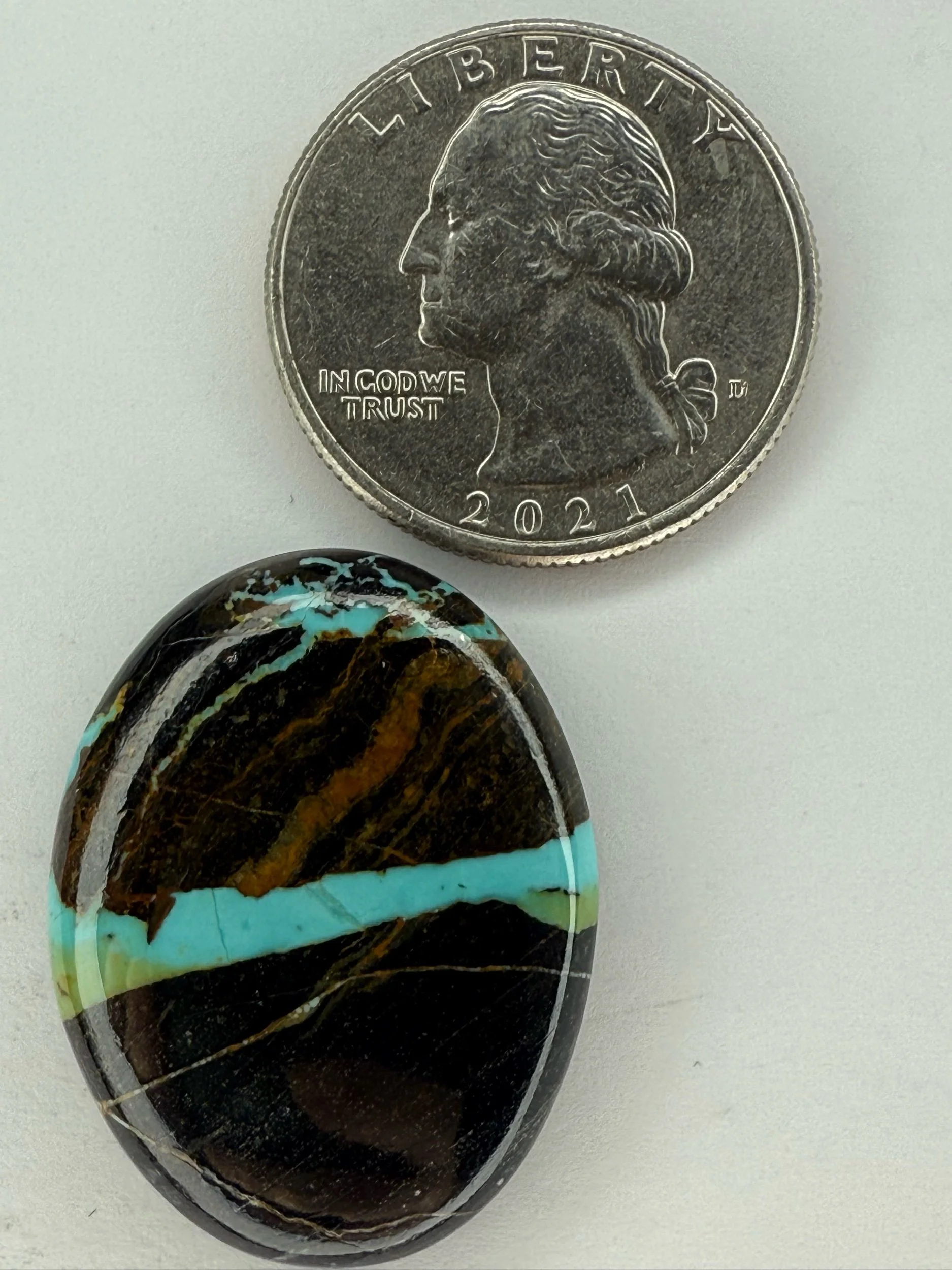 Shop › Blackjack Turquoise TC#510 Image 1 of 2 Image 2 of 2 Blackjack Turquoise TC#510 $85.00 Stabilized Blackjack Turquoise cabochon. Backed with black epoxy and ready to be set in jewelry. Weight 29 carats. Add To Cart Added! Stabilized Blackjack Turquoise cabochon. Backed with black epoxy and ready to be set in jewelry. Weight 29 carats.