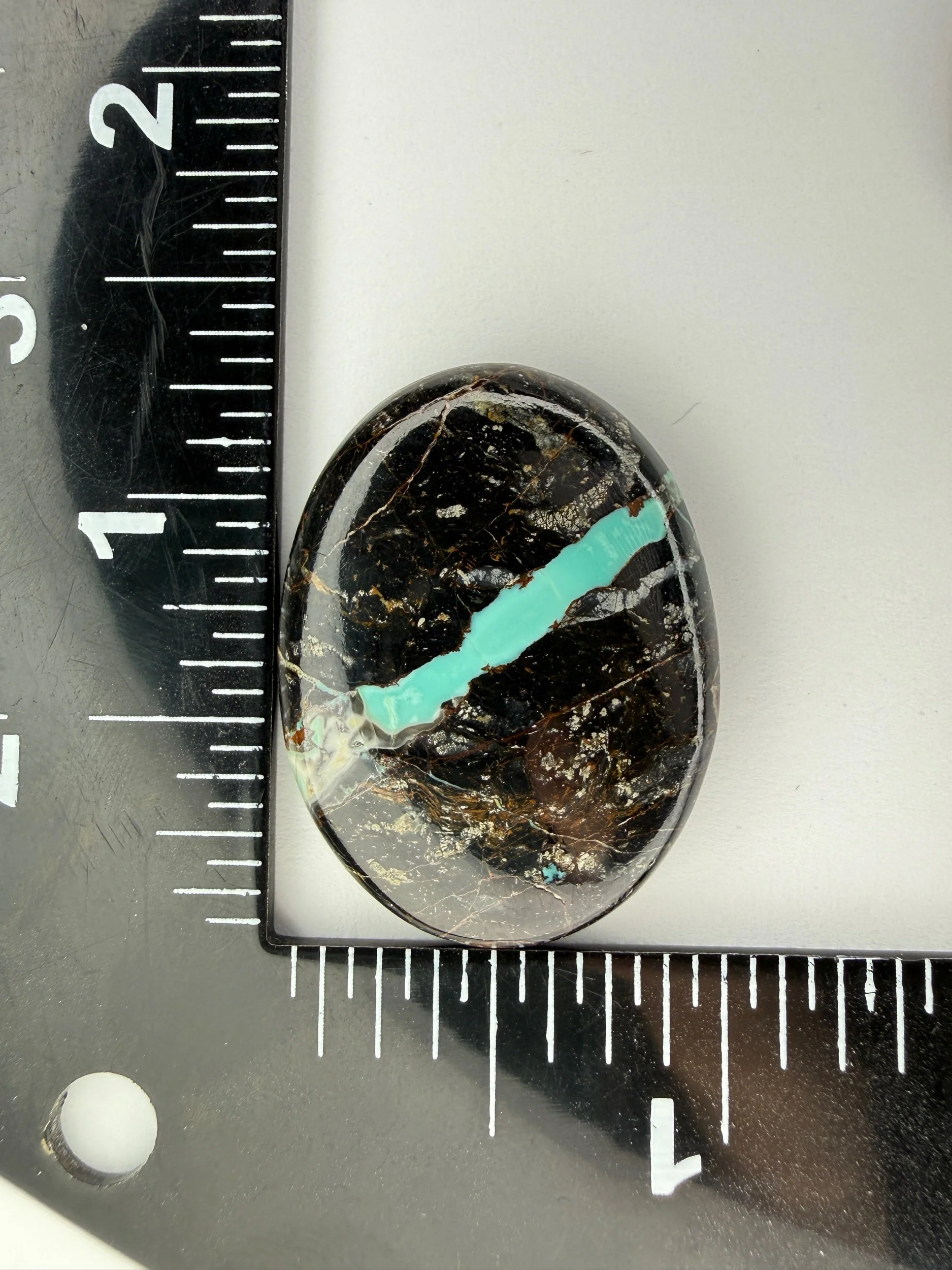 Shop › Blackjack Turquoise TC#14 Image 1 of 3 Image 2 of 3 Image 3 of 3 Blackjack Turquoise TC#14 $75.00 Natural Blackjack Turquoise cabochon. Backed with black epoxy and ready to be set in jewelry. Weight 38 carats. Add To Cart Added! Natural Blackjack Turquoise cabochon. Backed with black epoxy and ready to be set in jewelry. Weight 38 carats.