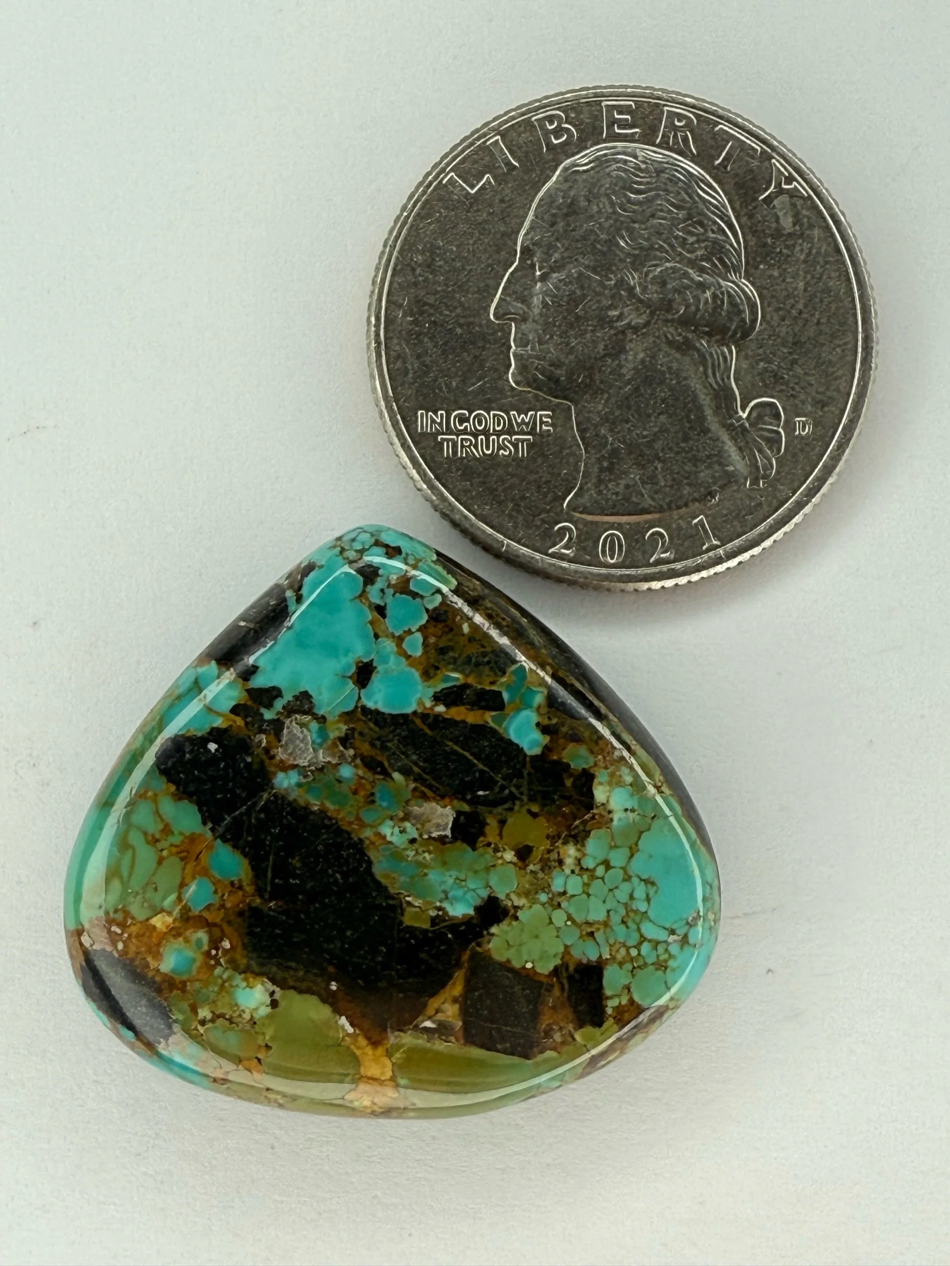 Shop › Blackjack Turquoise TC#334 Image 1 of 2 Image 2 of 2 Blackjack Turquoise TC#334 $110.00 Stabilized Blackjack Turquoise cabochon. Backed with black epoxy and ready to be set in jewelry. Weight 38 carats. Add To Cart Added! Stabilized Blackjack Turquoise cabochon. Backed with black epoxy and ready to be set in jewelry. Weight 38 carats.