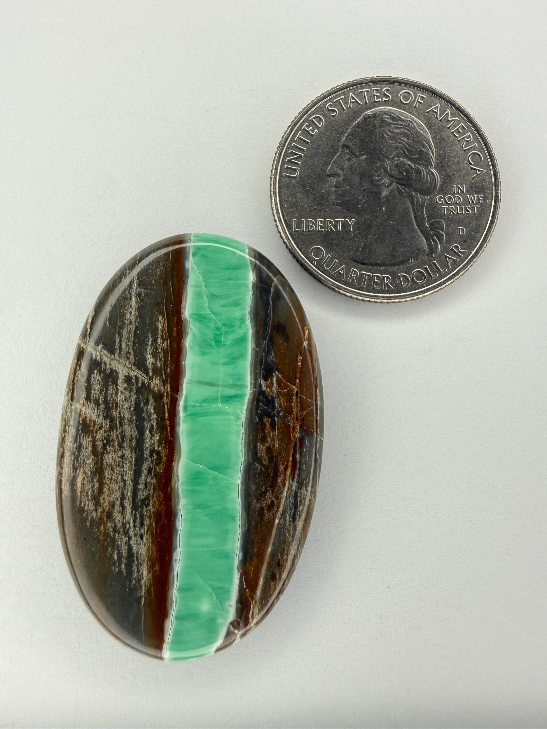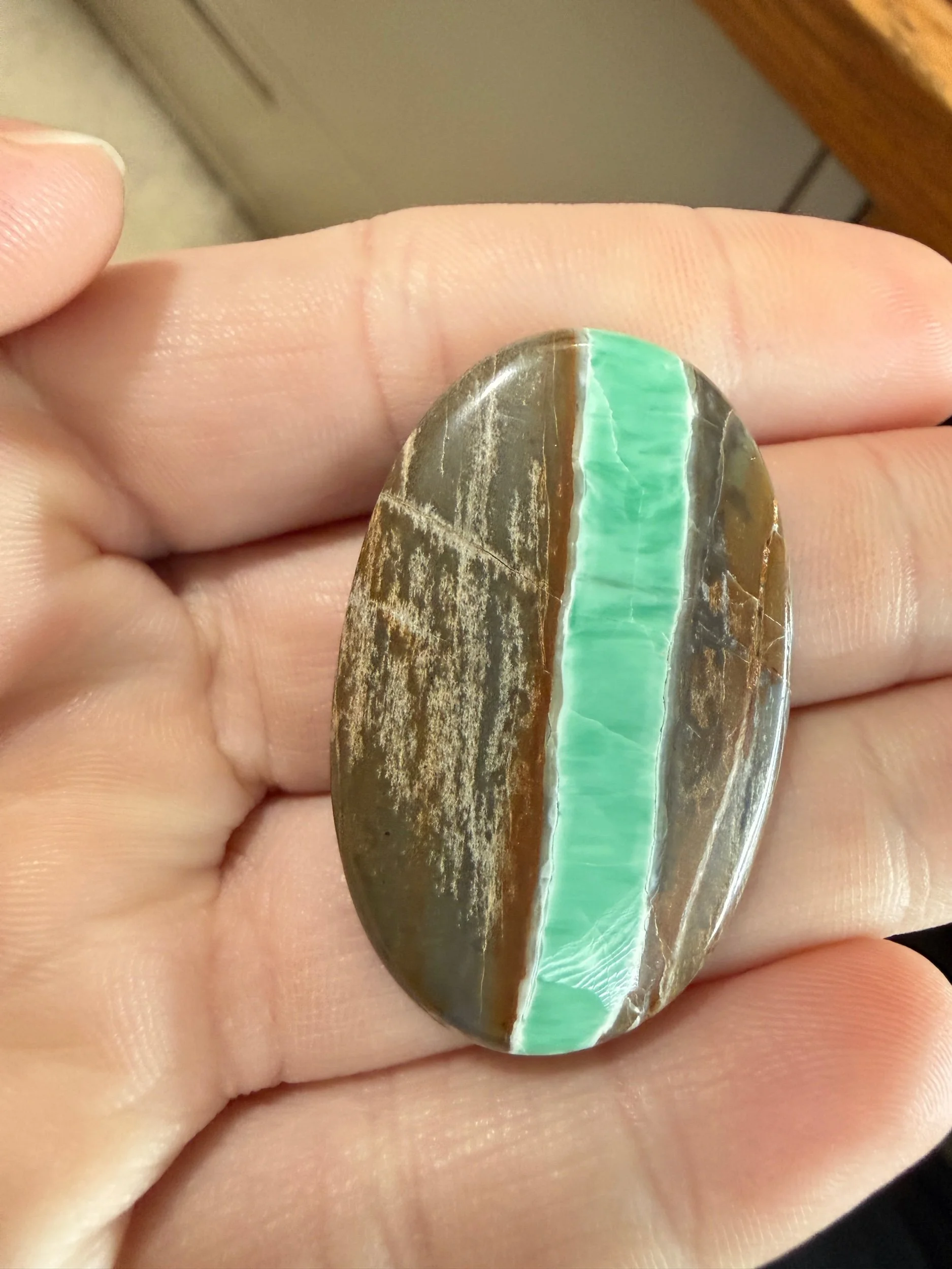 Shop › Australian Variscite TC#132 Image 1 of 3 Image 2 of 3 Image 3 of 3 Australian Variscite TC#132 $80.00 Stabilized Australian variscite cabochon. Backed with black epoxy and ready to be set in jewelry. Weight 43 carats. Add To Cart Added! Stabilized Australian variscite cabochon. Backed with black epoxy and ready to be set in jewelry. Weight 43 carats.