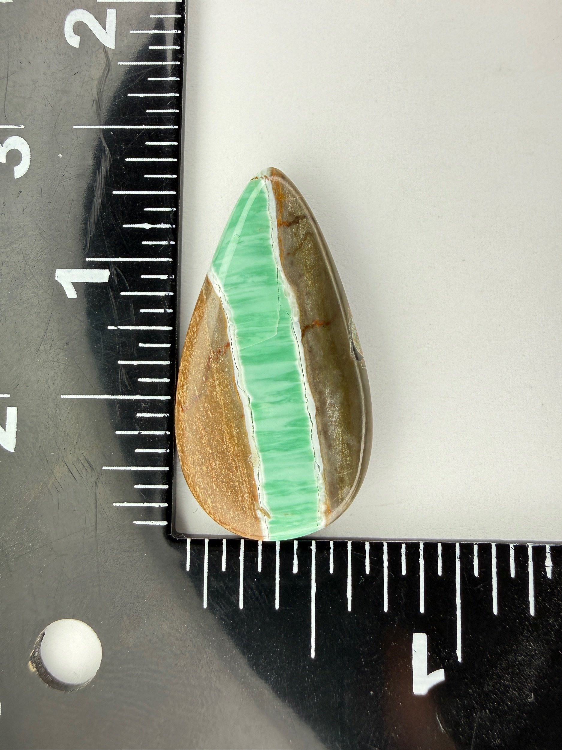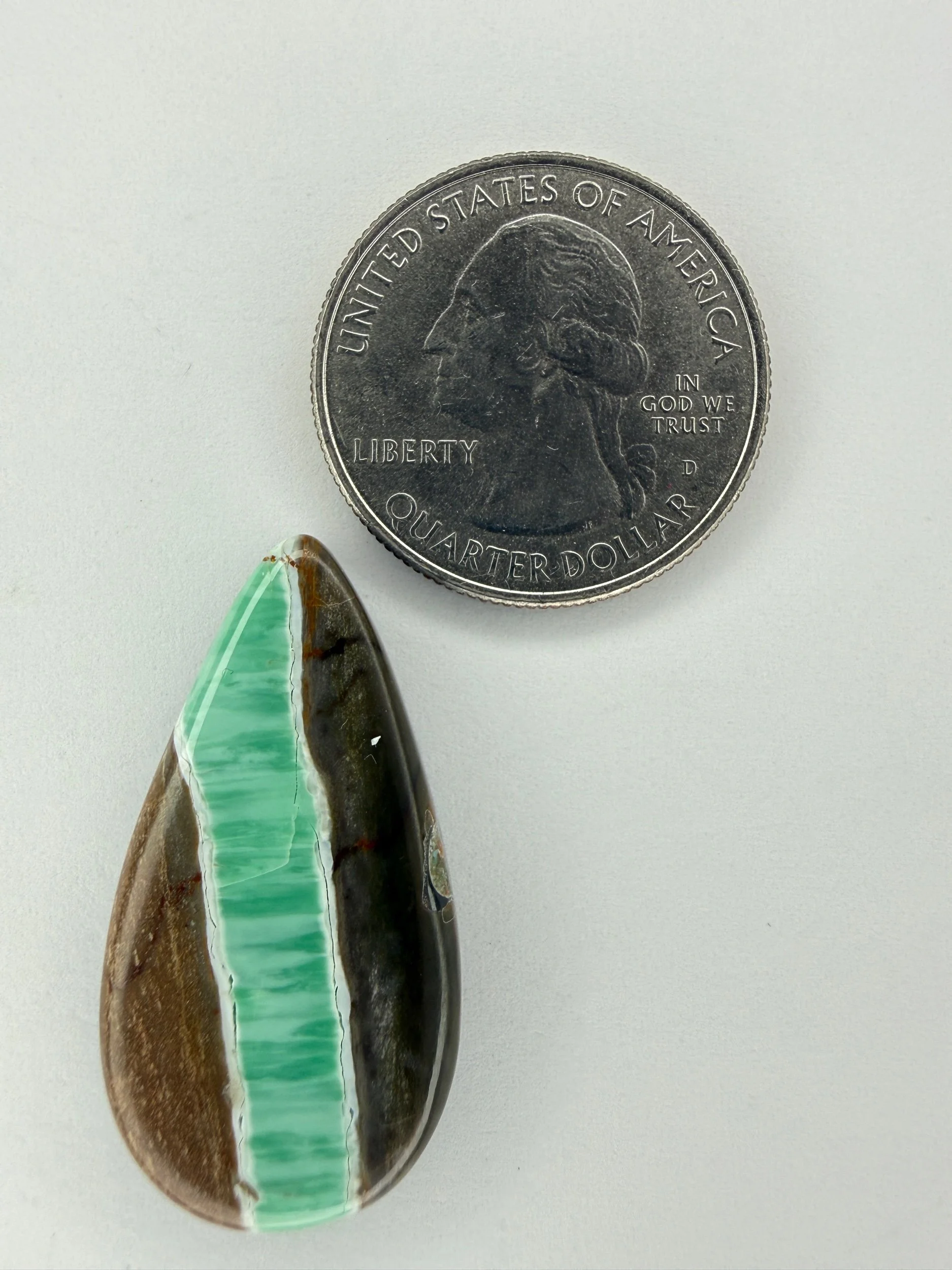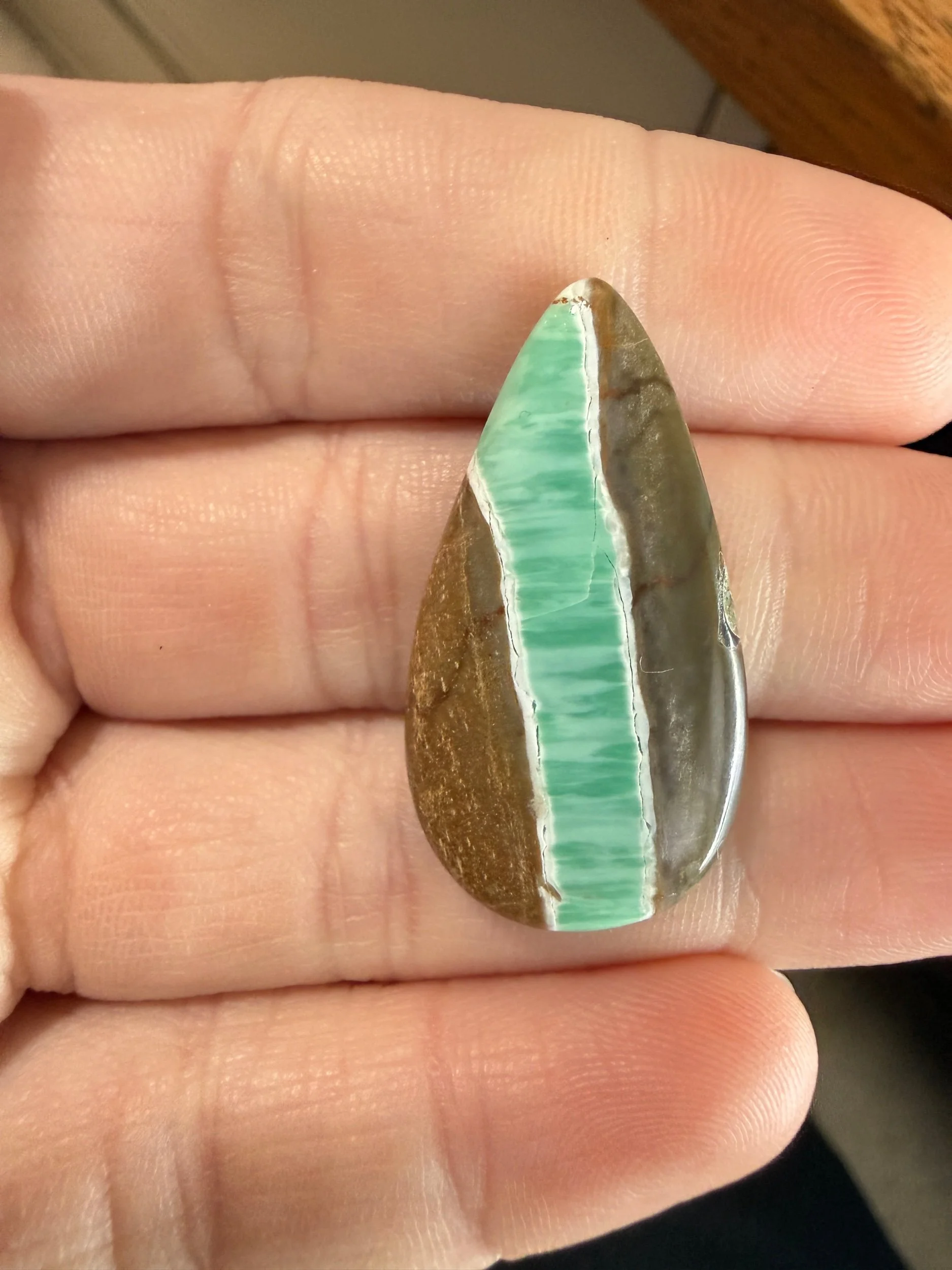 Shop › Australian Variscite TC#197 Image 1 of 3 Image 2 of 3 Image 3 of 3 Australian Variscite TC#197 $40.00 Stabilized Australian variscite cabochon. Backed with black epoxy and ready to be set in jewelry. Weight 20 carats. Add To Cart Added! Stabilized Australian variscite cabochon. Backed with black epoxy and ready to be set in jewelry. Weight 20 carats.