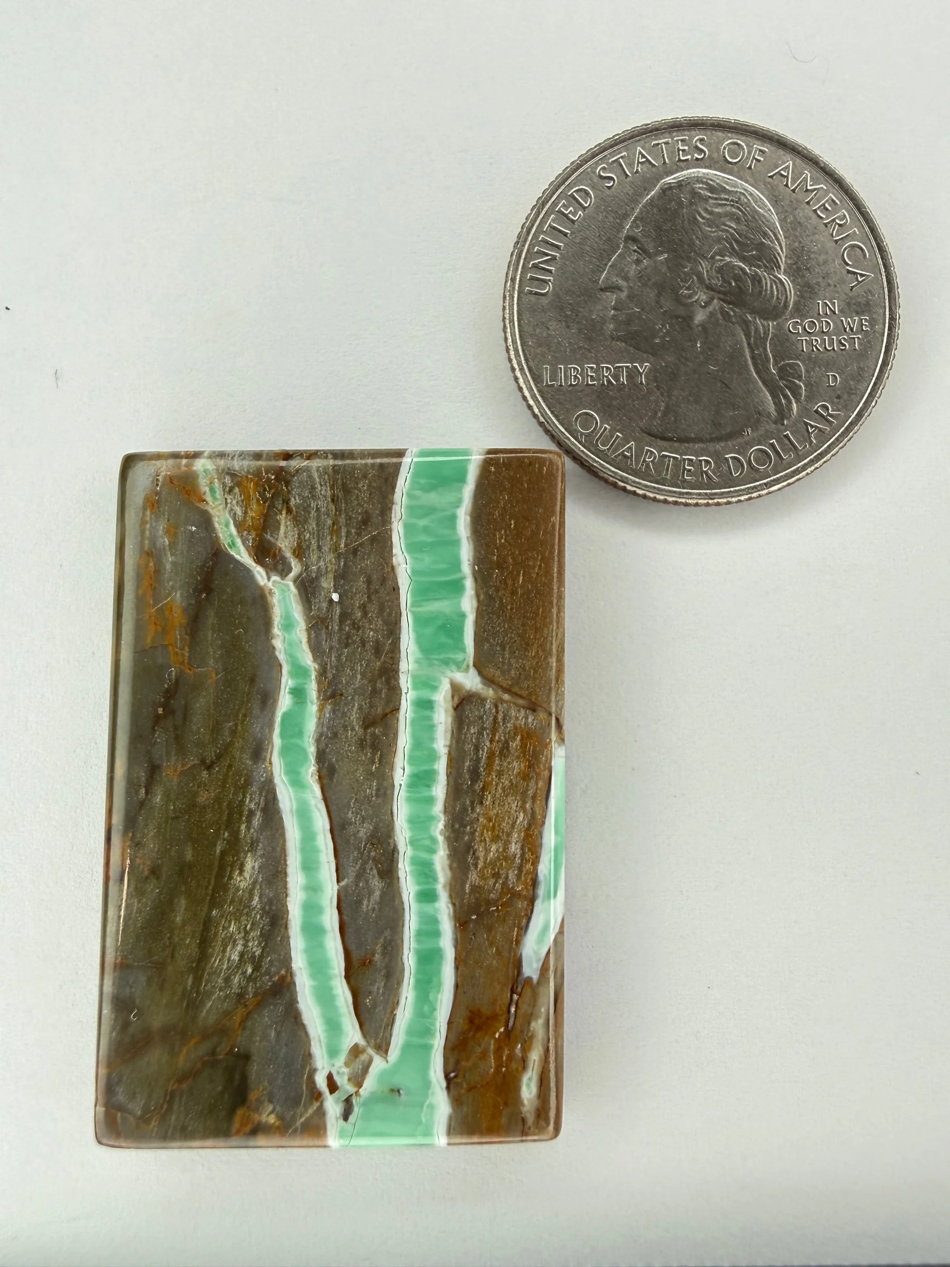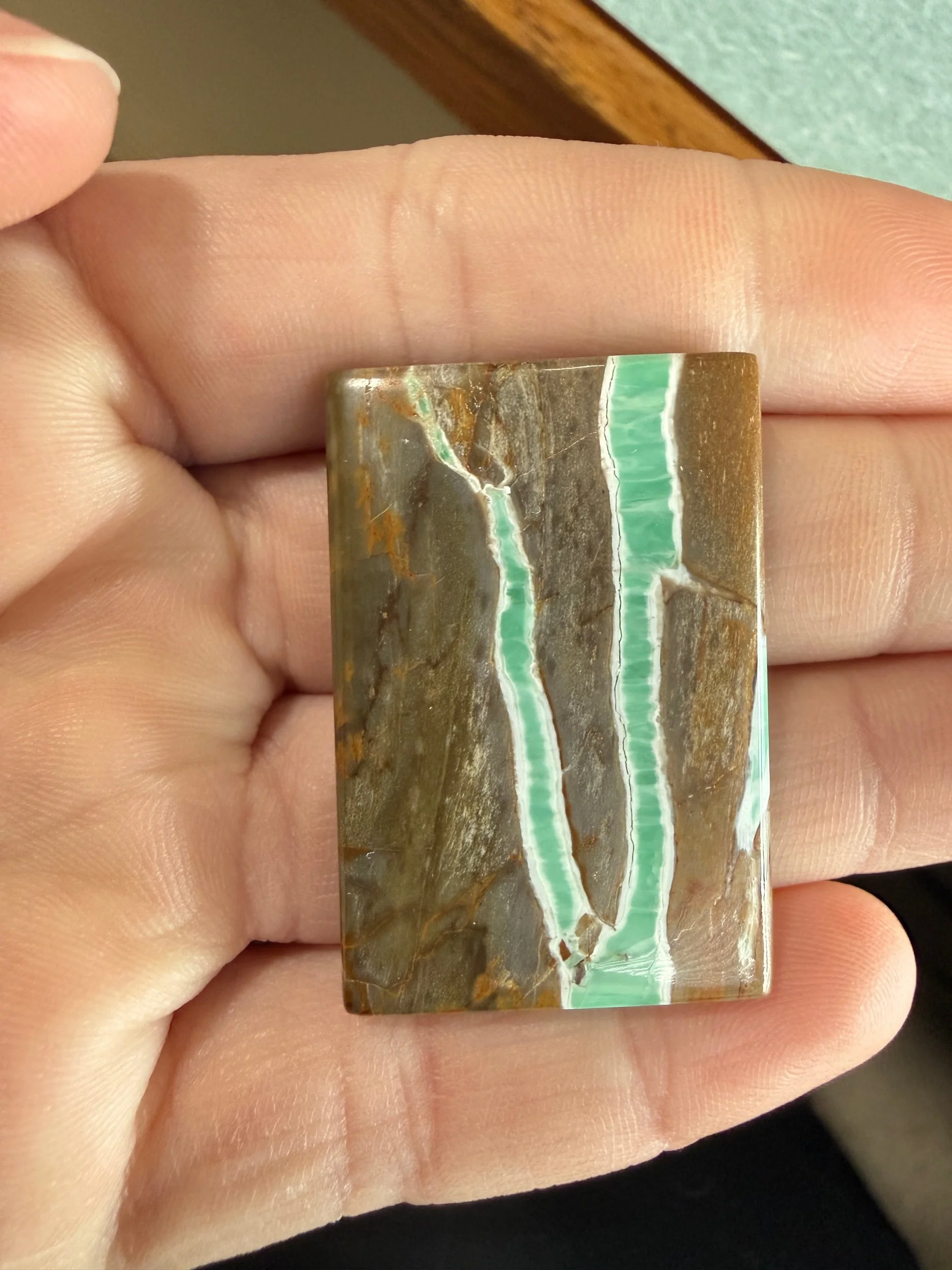 Shop › Australian Variscite TC#228 Image 1 of 3 Image 2 of 3 Image 3 of 3 Australian Variscite TC#228 $100.00 Stabilized Australian variscite cabochon. Backed with black epoxy and ready to be set in jewelry. Weight 51 carats. Add To Cart Added! Stabilized Australian variscite cabochon. Backed with black epoxy and ready to be set in jewelry. Weight 51 carats.
