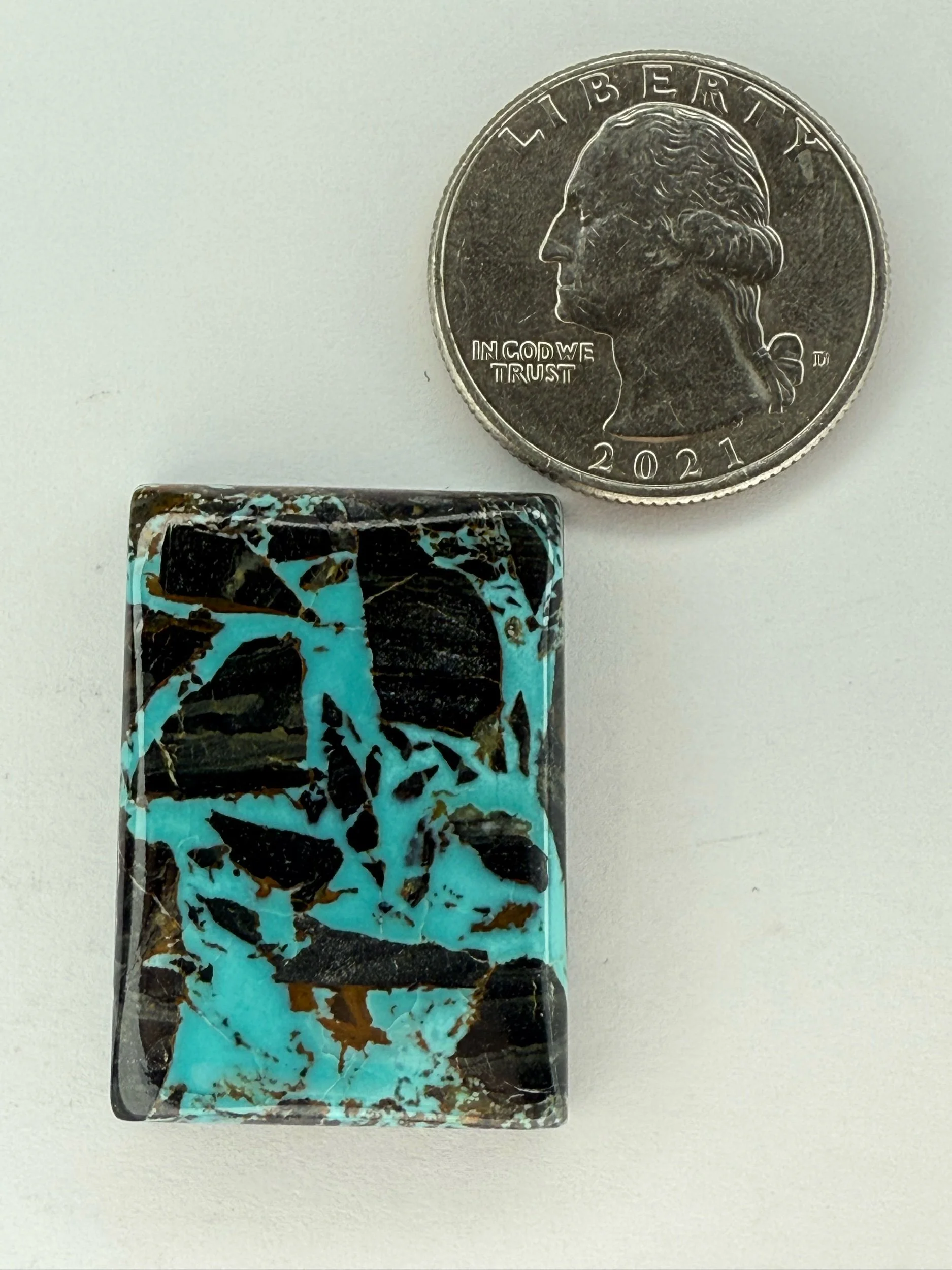 Shop › Blackjack Turquoise TC#342 Image 1 of 2 Image 2 of 2 Blackjack Turquoise TC#342 $130.00 Stabilized Blackjack Turquoise cabochon. Backed with black epoxy and ready to be set in jewelry. Weight 46 carats. Add To Cart Added! Stabilized Blackjack Turquoise cabochon. Backed with black epoxy and ready to be set in jewelry. Weight 46 carats.