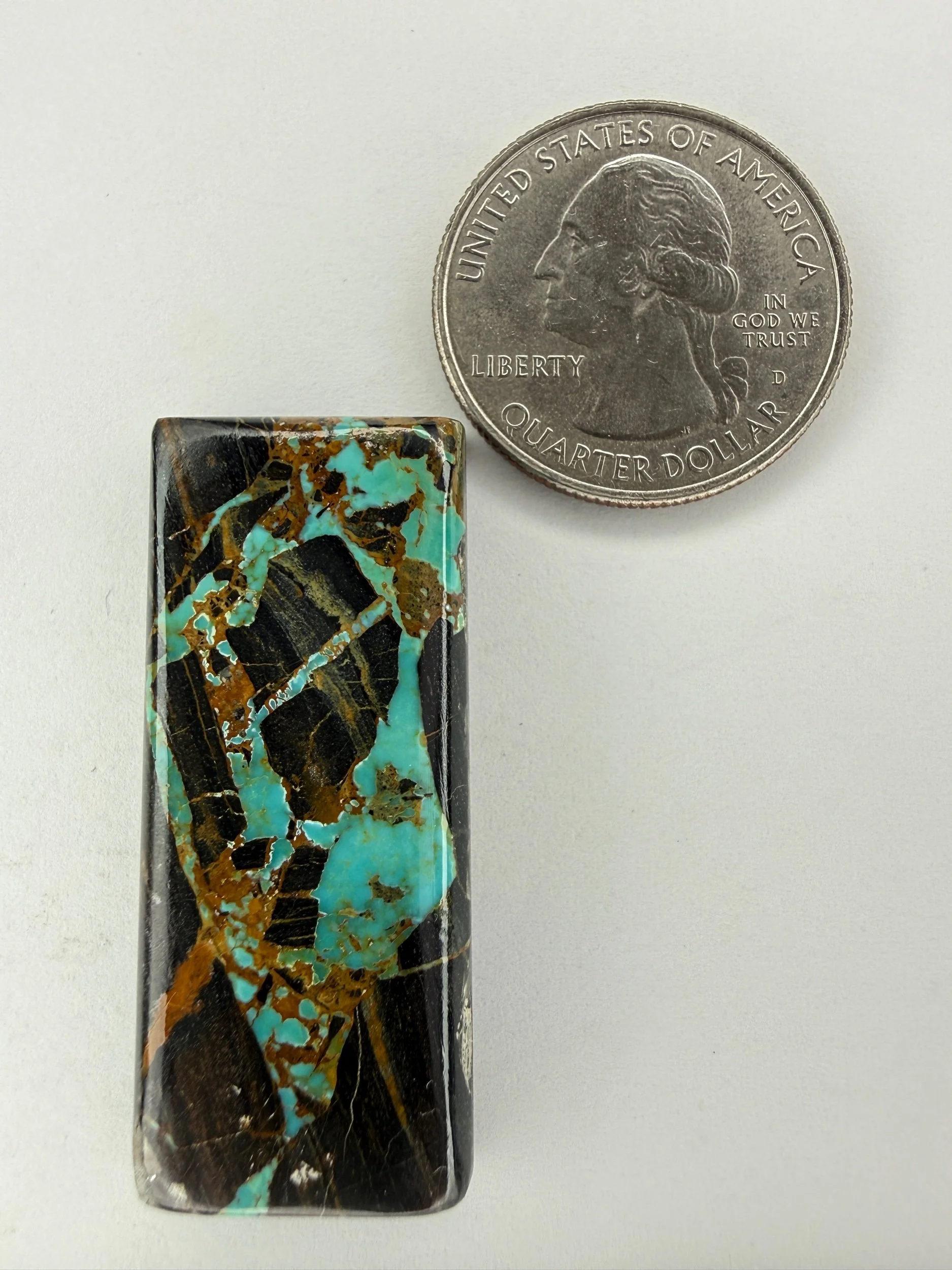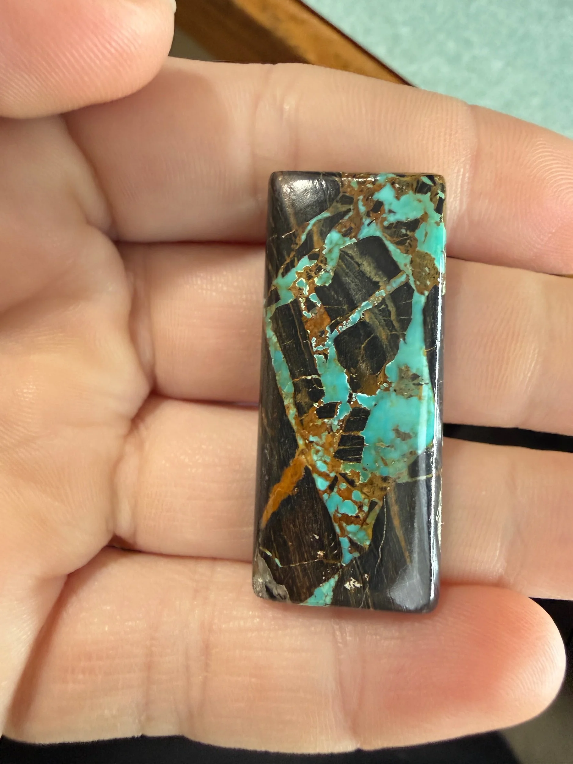 Shop › Blackjack Turquoise TC#254 Image 1 of 3 Image 2 of 3 Image 3 of 3 Blackjack Turquoise TC#254 $100.00 Natural Blackjack Turquoise cabochon. Backed with black epoxy and ready to be set in jewelry. Weight 50 carats. Add To Cart Added! Natural Blackjack Turquoise cabochon. Backed with black epoxy and ready to be set in jewelry. Weight 50 carats.