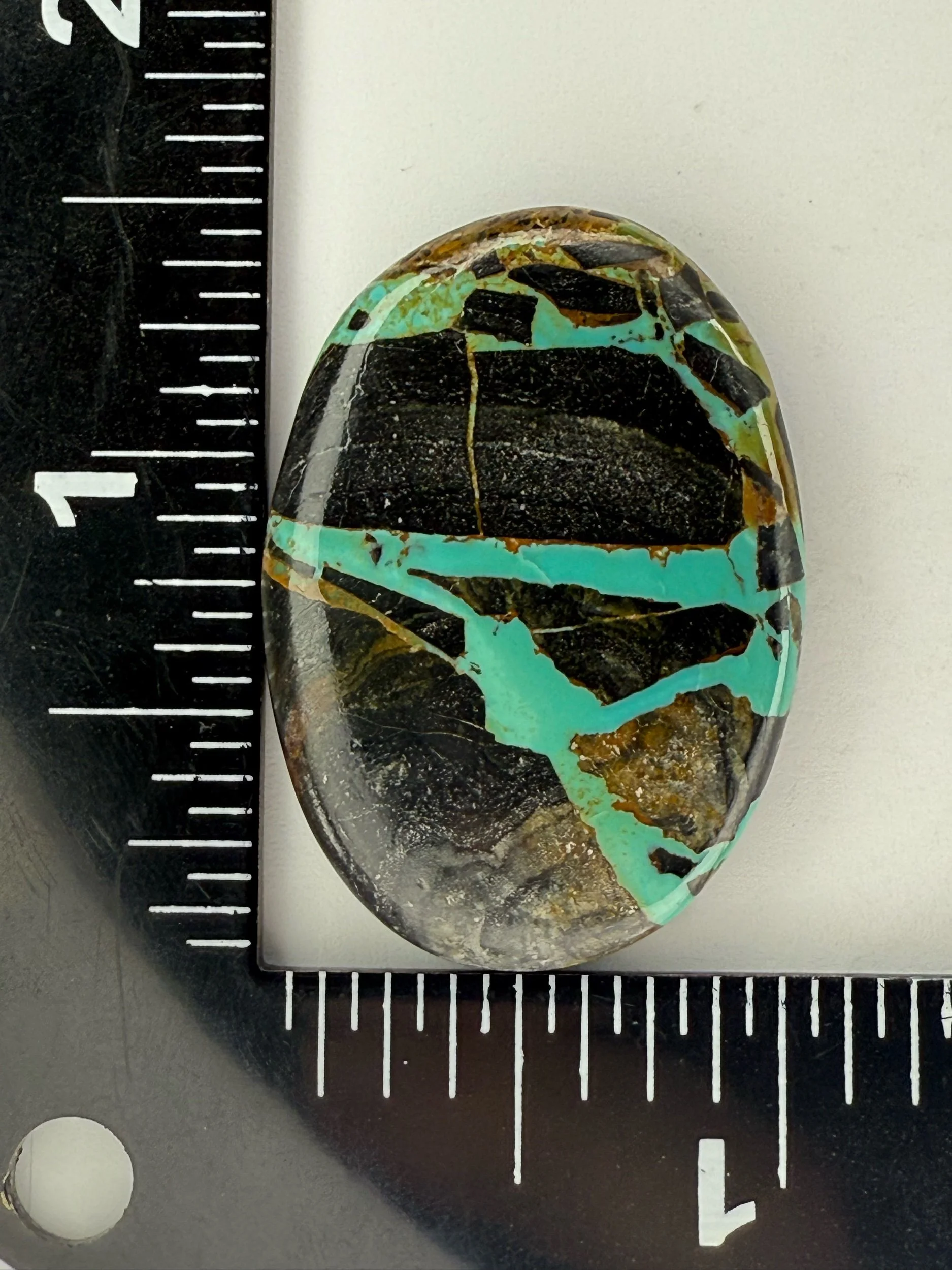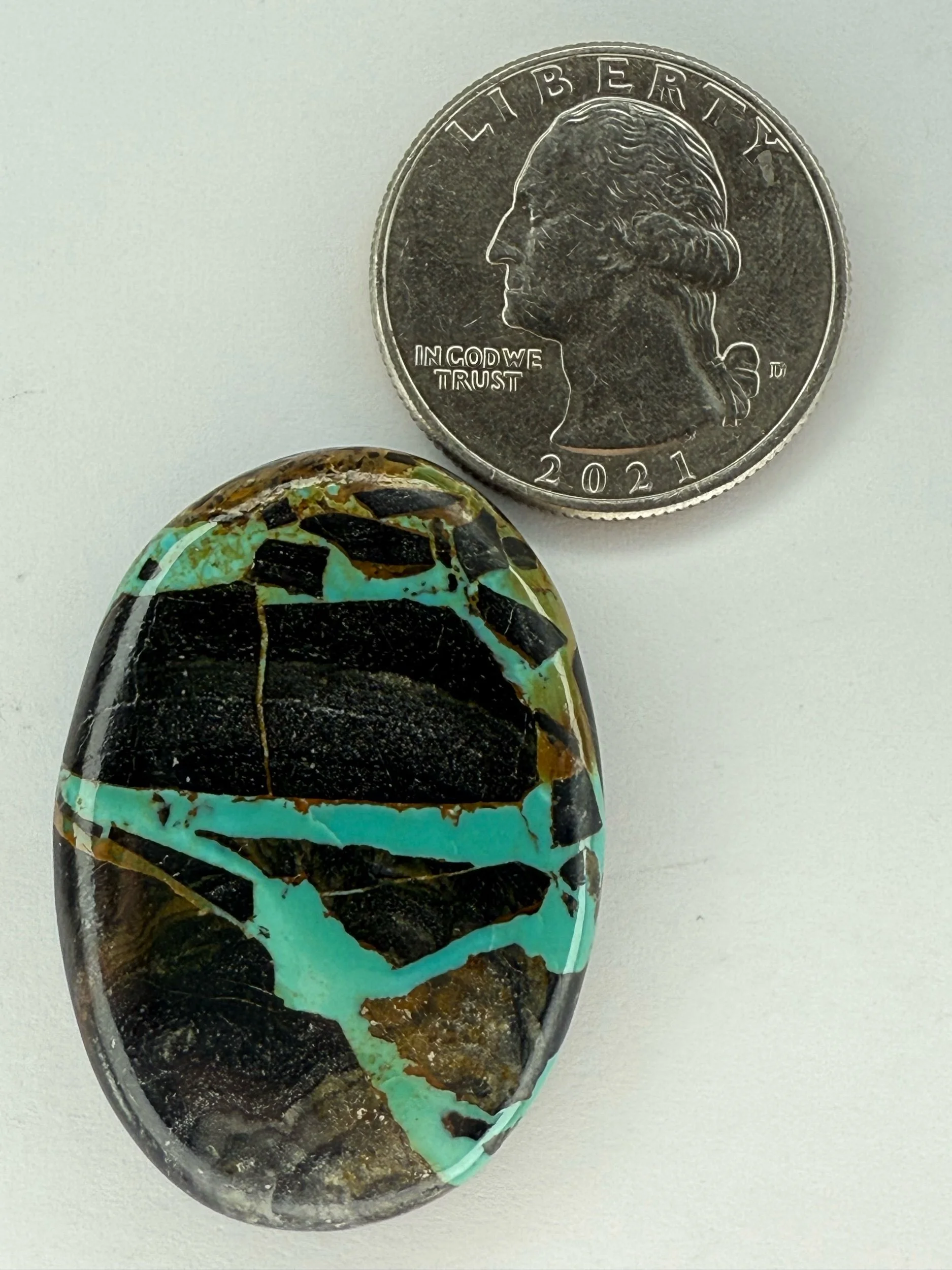 Shop › Blackjack Turquoise TC#337 Image 1 of 2 Image 2 of 2 Blackjack Turquoise TC#337 $125.00 Stabilized Blackjack Turquoise cabochon. Backed with black epoxy and ready to be set in jewelry. Weight 49 carats. Add To Cart Added! Stabilized Blackjack Turquoise cabochon. Backed with black epoxy and ready to be set in jewelry. Weight 49 carats.