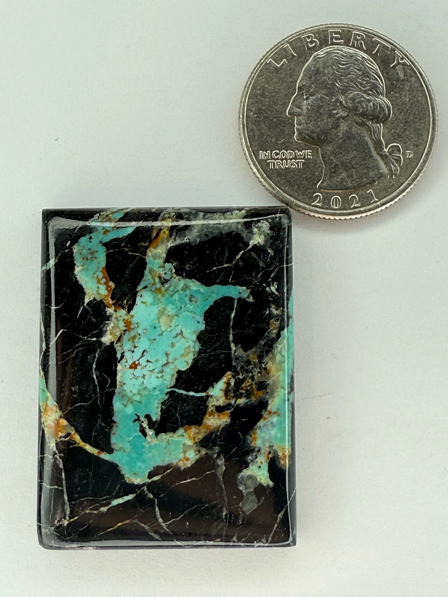 Shop › Blackjack Turquoise TC#197 Image 1 of 2 Image 2 of 2 Blackjack Turquoise TC#197 $200.00 Stabilized Blackjack Turquoise cabochon. Backed with black epoxy and ready to be set in jewelry. Weight 68 carats. Add To Cart Added! Stabilized Blackjack Turquoise cabochon. Backed with black epoxy and ready to be set in jewelry. Weight 68 carats.