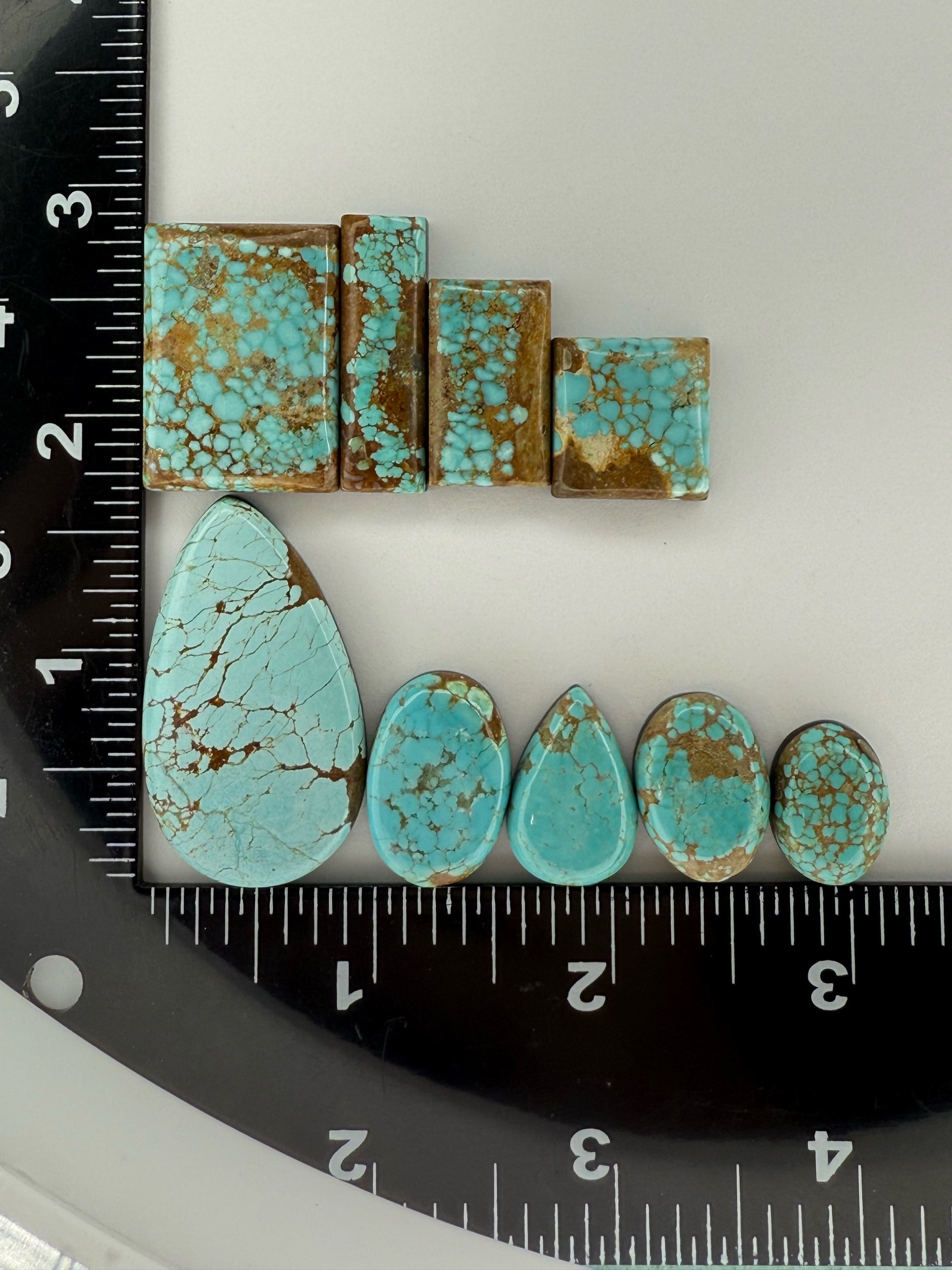 Shop › No.8 Turquoise TC#529 Image 1 of 2 Image 2 of 2 No.8 Turquoise TC#529 Sale Price: $299.00 Original Price: $330.00 Stabilized No.8 turquoise cabochon group. Backed with black epoxy and ready to be set in jewelry. Weight 165 carats. Add To Cart Added! Stabilized No.8 turquoise cabochon group. Backed with black epoxy and ready to be set in jewelry. Weight 165 carats.