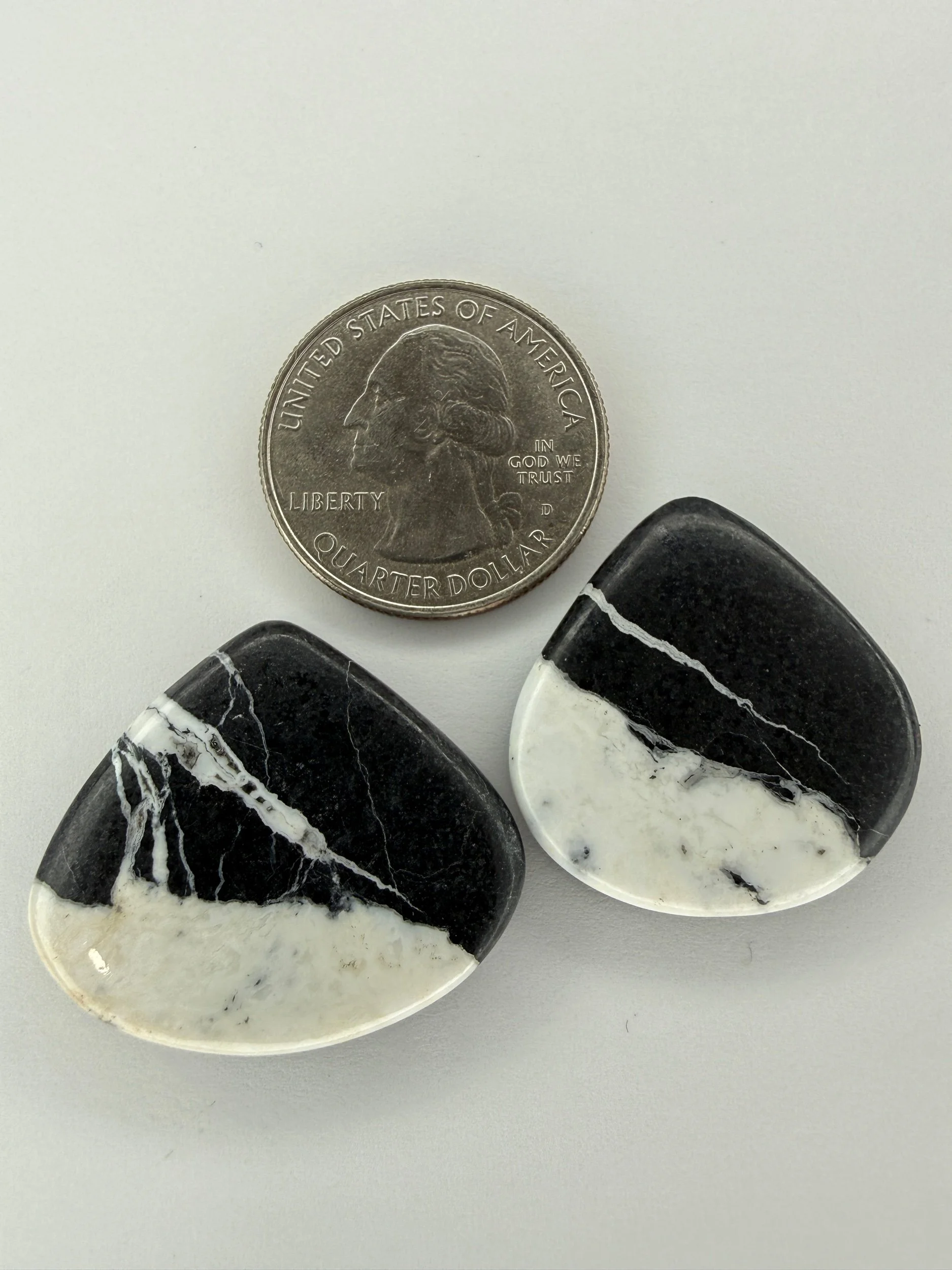 Shop › White Buffalo TC#271 Image 1 of 3 Image 2 of 3 Image 3 of 3 White Buffalo TC#271 $100.00 Natural White Buffalo cabochon pair. Backed with black epoxy and ready to be set in jewelry. Weight 53 carats. Add To Cart Added! Natural White Buffalo cabochon pair. Backed with black epoxy and ready to be set in jewelry. Weight 53 carats.