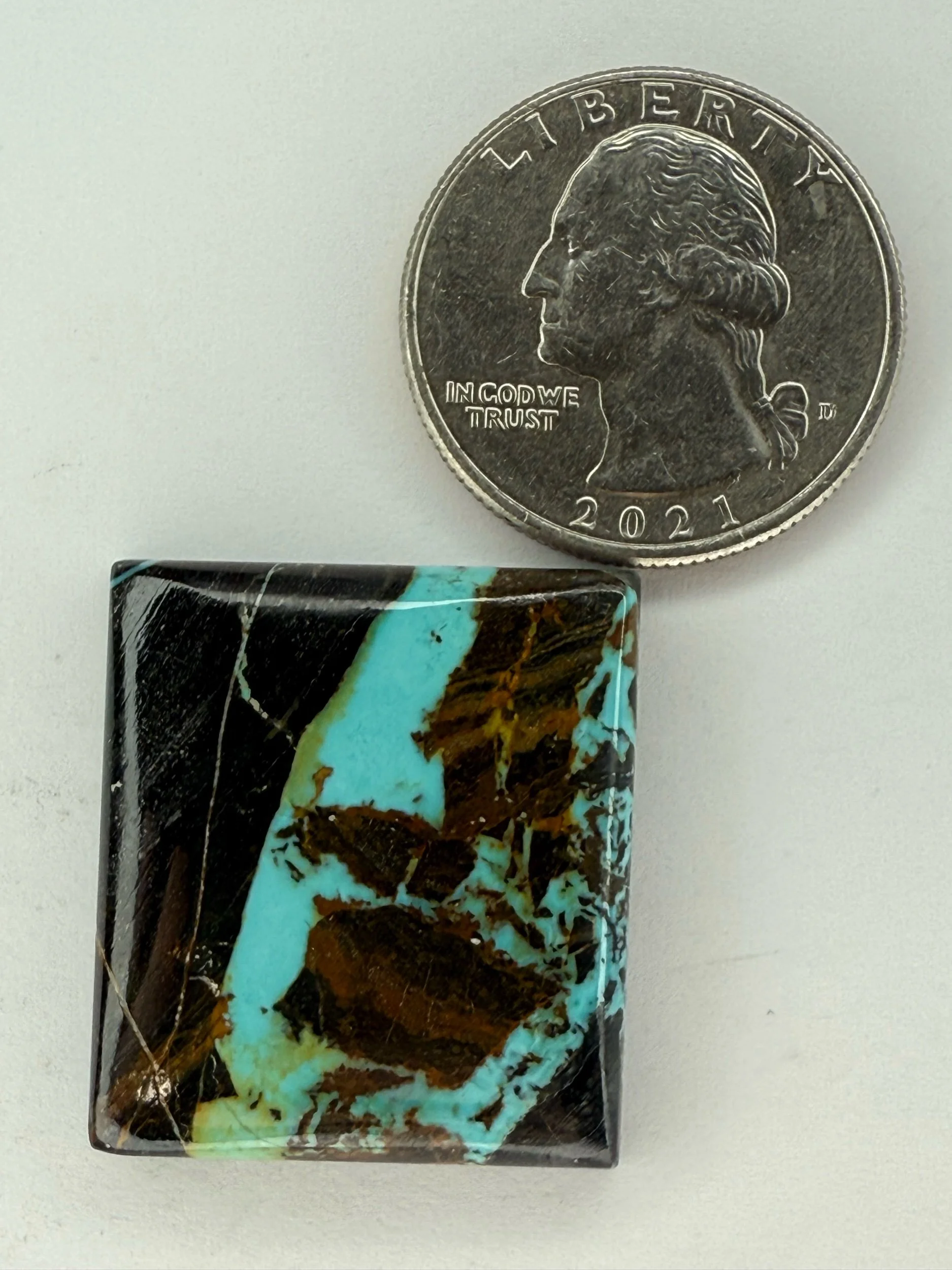 Shop › Blackjack Turquoise TC#436 Image 1 of 2 Image 2 of 2 Blackjack Turquoise TC#436 $110.00 Stabilized Blackjack Turquoise cabochon. Backed with black epoxy and ready to be set in jewelry. Weight 37 carats. Add To Cart Added! Stabilized Blackjack Turquoise cabochon. Backed with black epoxy and ready to be set in jewelry. Weight 37 carats.
