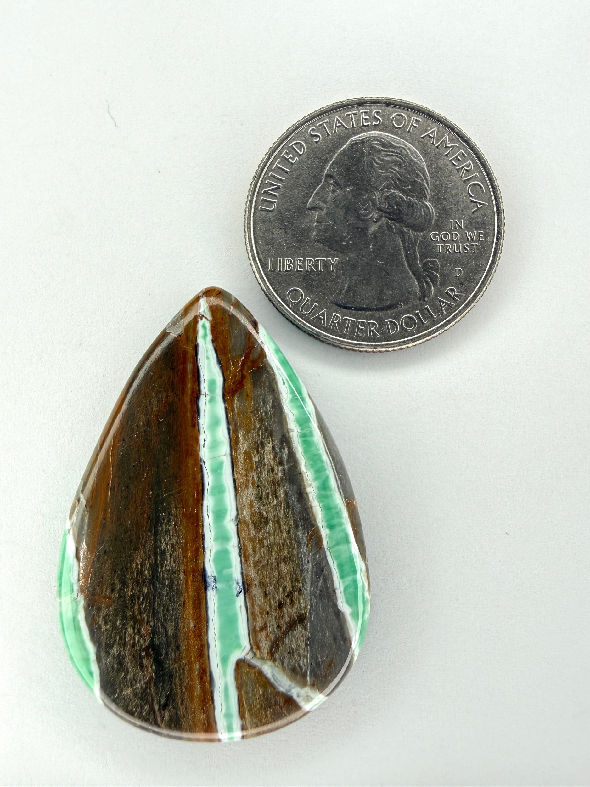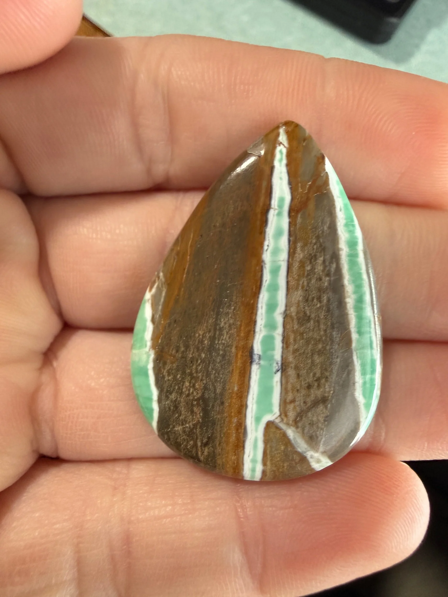 Shop › Australian Variscite TC#219 Image 1 of 3 Image 2 of 3 Image 3 of 3 Australian Variscite TC#219 $70.00 Stabilized Australian variscite cabochon. Backed with black epoxy and ready to be set in jewelry. Weight 36 carats. Add To Cart Added! Stabilized Australian variscite cabochon. Backed with black epoxy and ready to be set in jewelry. Weight 36 carats.