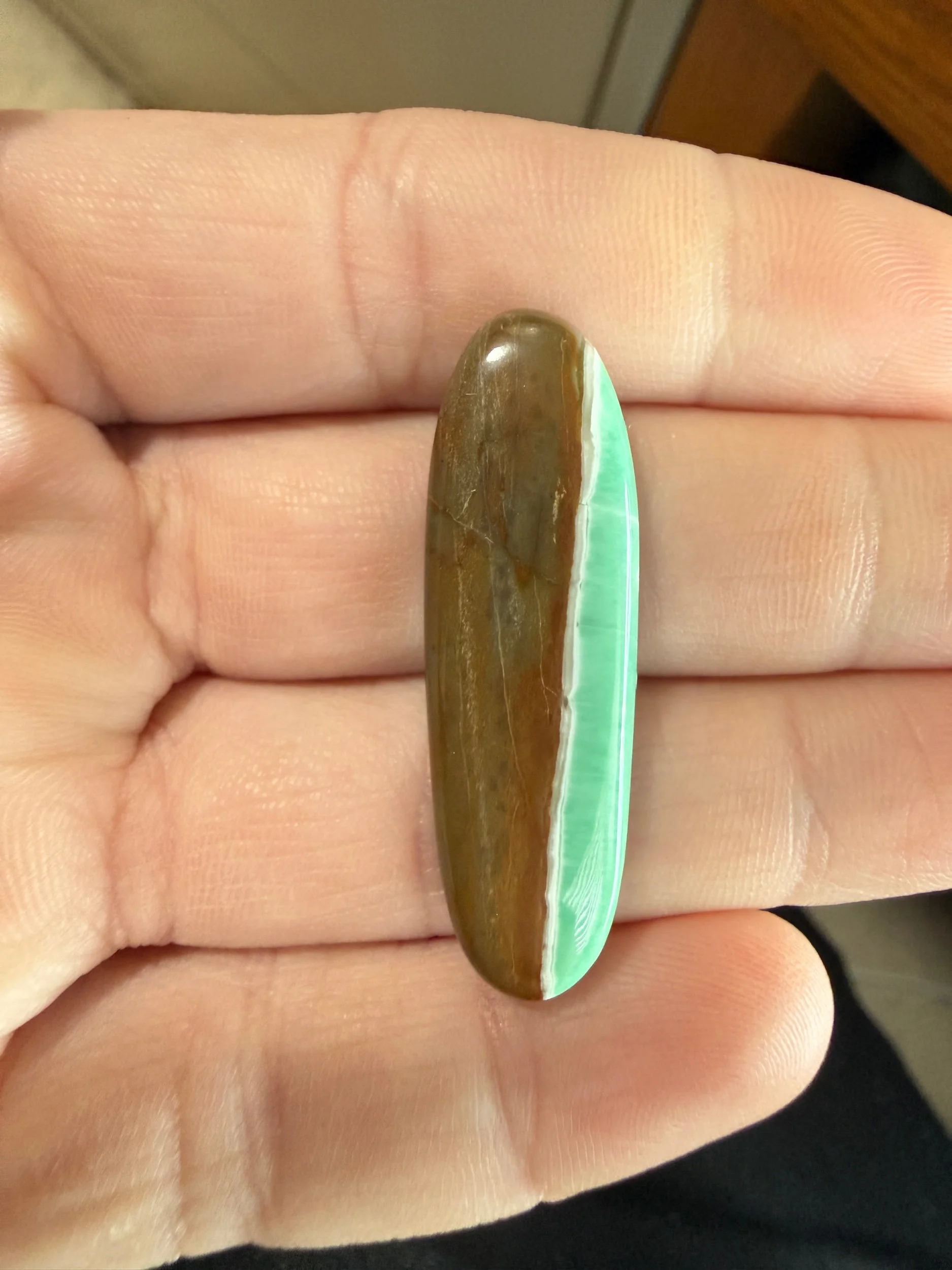 Shop › Australian Variscite TC#214 Image 1 of 3 Image 2 of 3 Image 3 of 3 Australian Variscite TC#214 $45.00 Stabilized Australian variscite cabochon. Backed with black epoxy and ready to be set in jewelry. Weight 22 carats. Add To Cart Added! Stabilized Australian variscite cabochon. Backed with black epoxy and ready to be set in jewelry. Weight 22 carats.