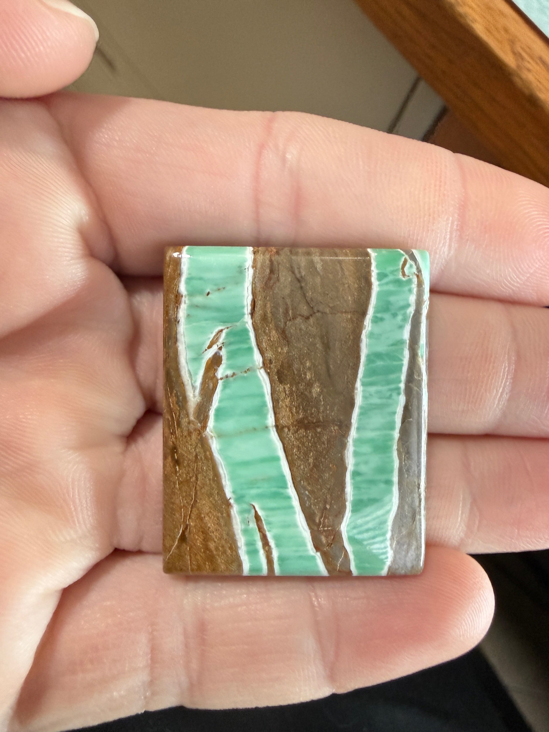 Shop › Australian Variscite TC#131 Image 1 of 3 Image 2 of 3 Image 3 of 3 Australian Variscite TC#131 $100.00 Stabilized Australian variscite cabochon. Backed with black epoxy and ready to be set in jewelry. Weight 54 carats. Add To Cart Added! Stabilized Australian variscite cabochon. Backed with black epoxy and ready to be set in jewelry. Weight 54 carats.