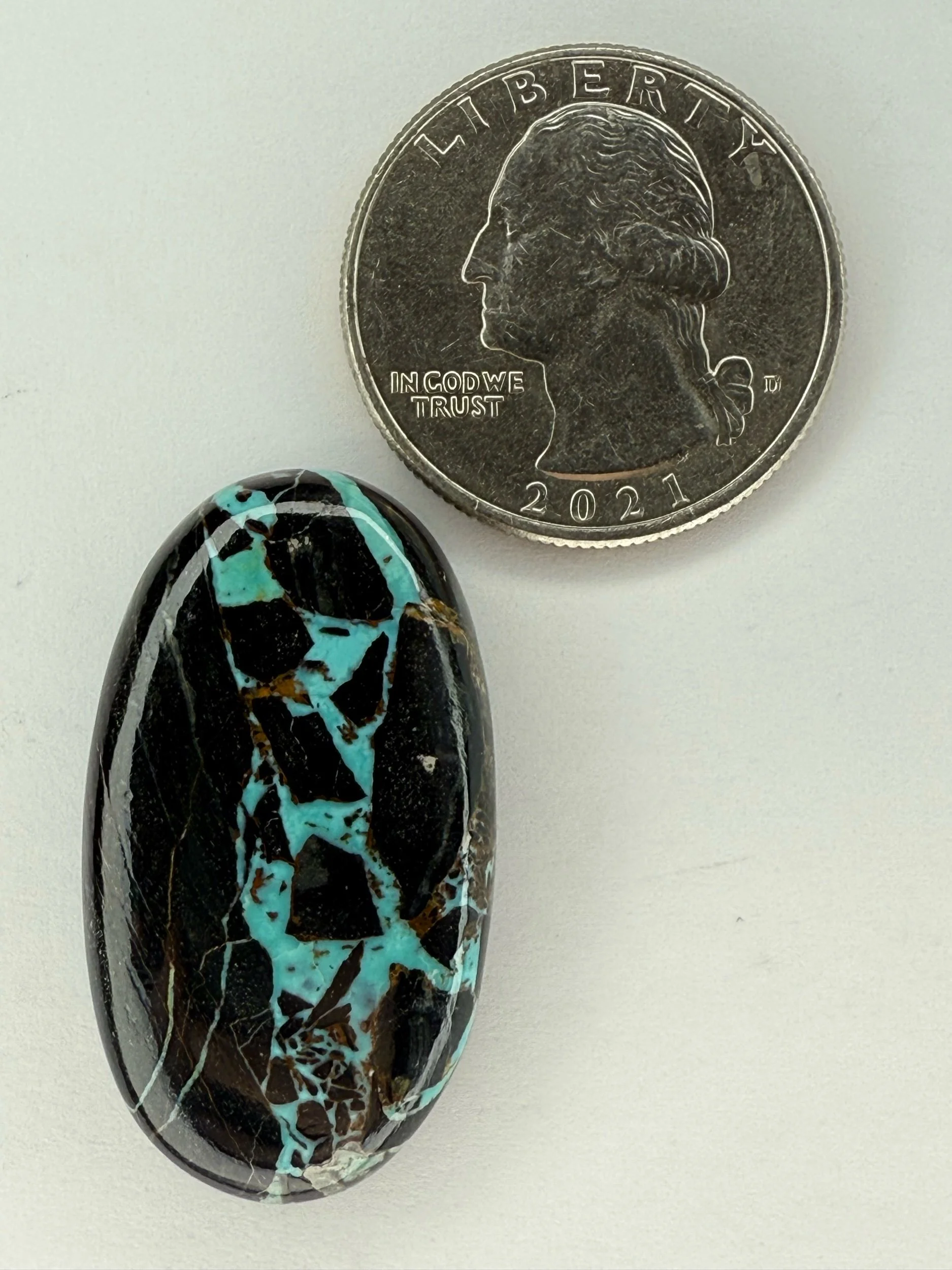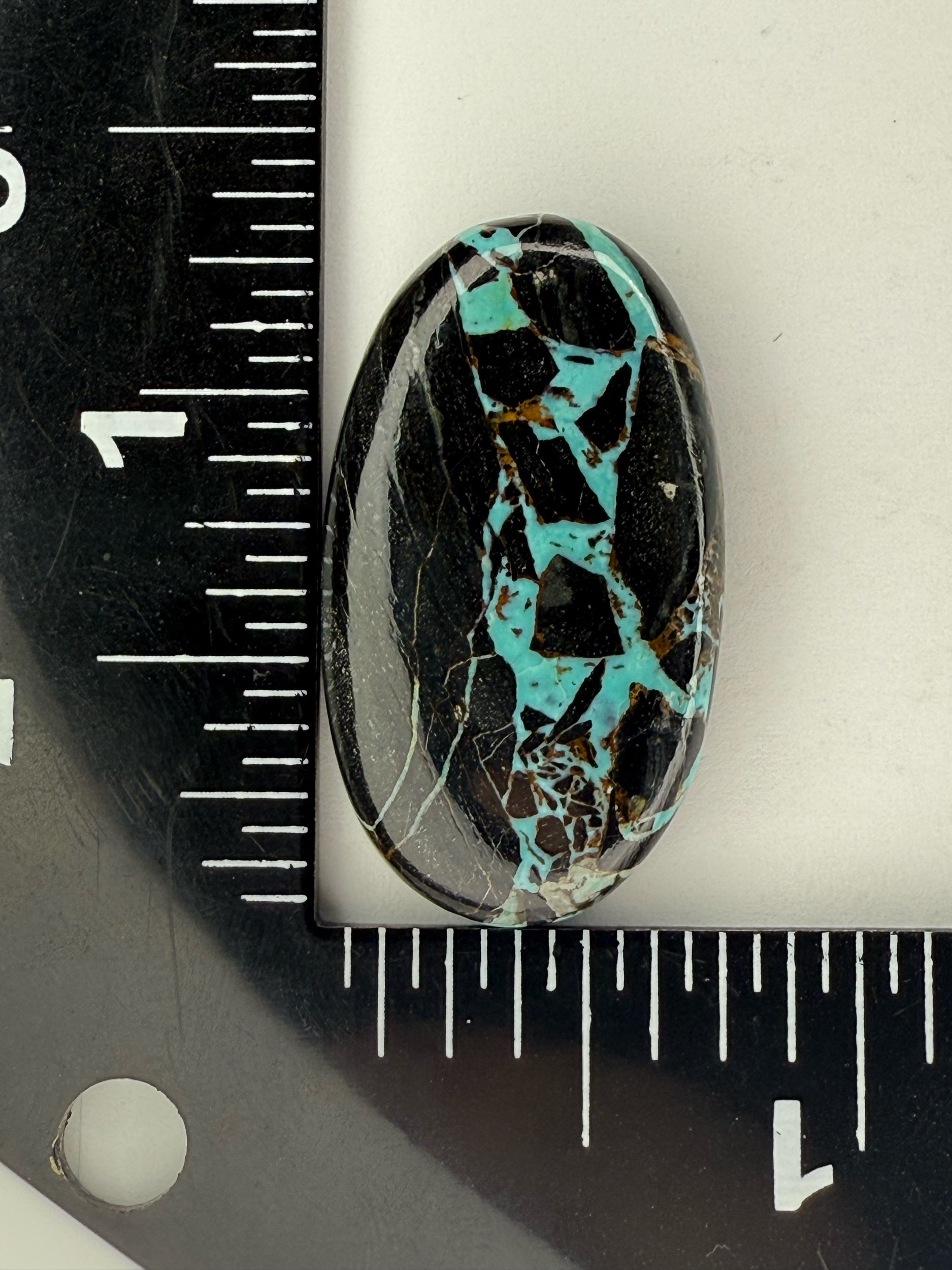 Shop › Blackjack Turquoise TC#332 Image 1 of 2 Image 2 of 2 Blackjack Turquoise TC#332 $100.00 Stabilized Blackjack Turquoise cabochon. Backed with black epoxy and ready to be set in jewelry. Weight 35 carats. Add To Cart Added! Stabilized Blackjack Turquoise cabochon. Backed with black epoxy and ready to be set in jewelry. Weight 35 carats.