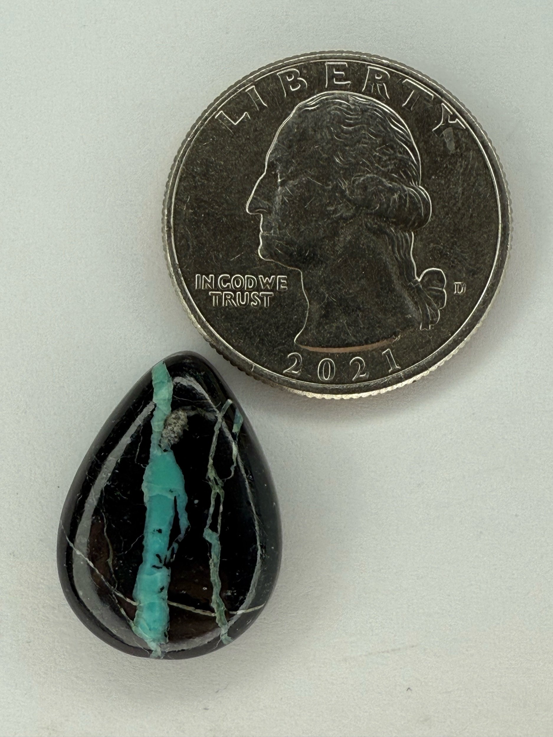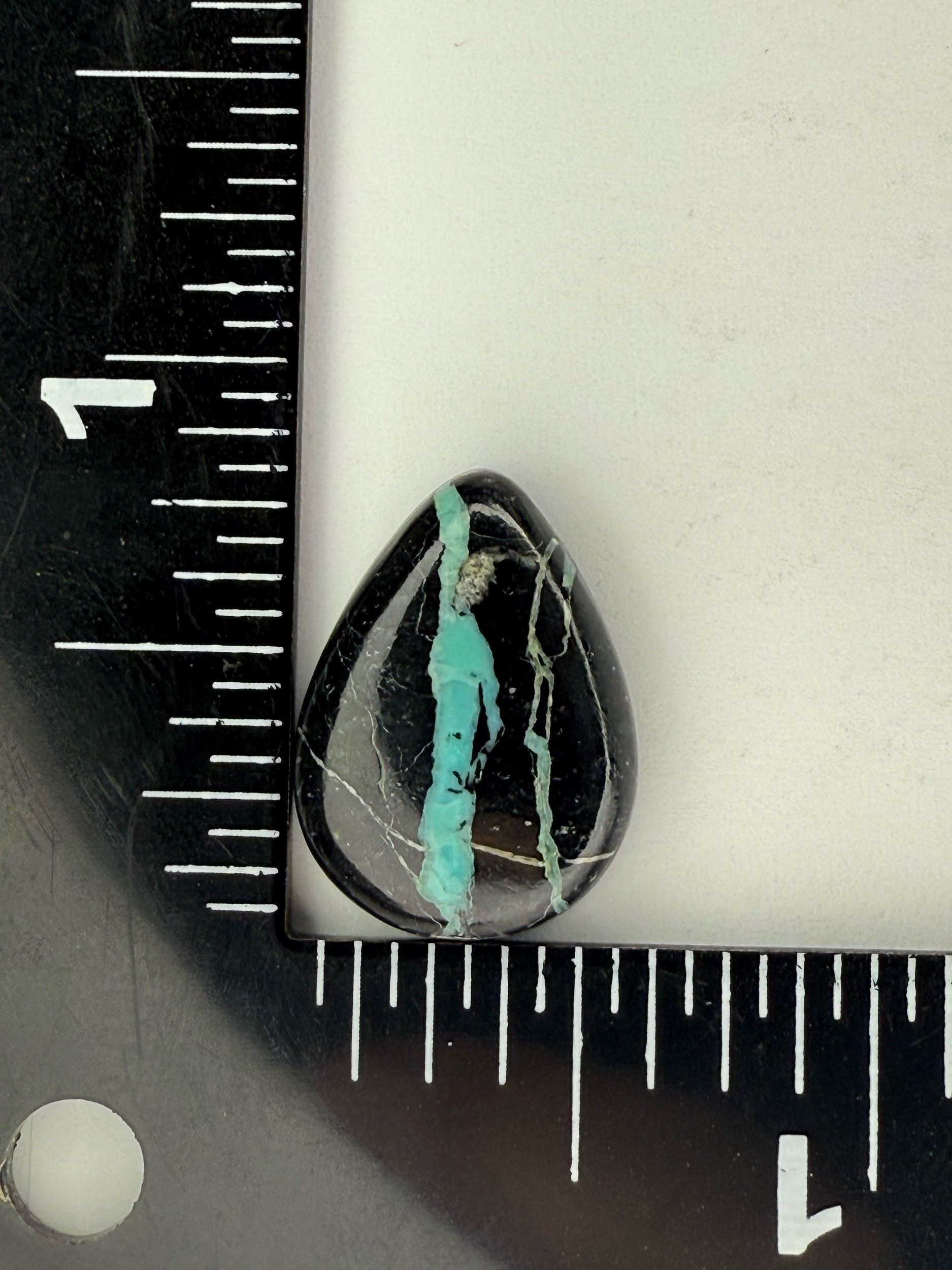 Shop › Blackjack Turquoise TC#338 Image 1 of 2 Image 2 of 2 Blackjack Turquoise TC#338 $30.00 Stabilized Blackjack Turquoise cabochon. Backed with black epoxy and ready to be set in jewelry. Weight 11 carats. Add To Cart Added! Stabilized Blackjack Turquoise cabochon. Backed with black epoxy and ready to be set in jewelry. Weight 11 carats.