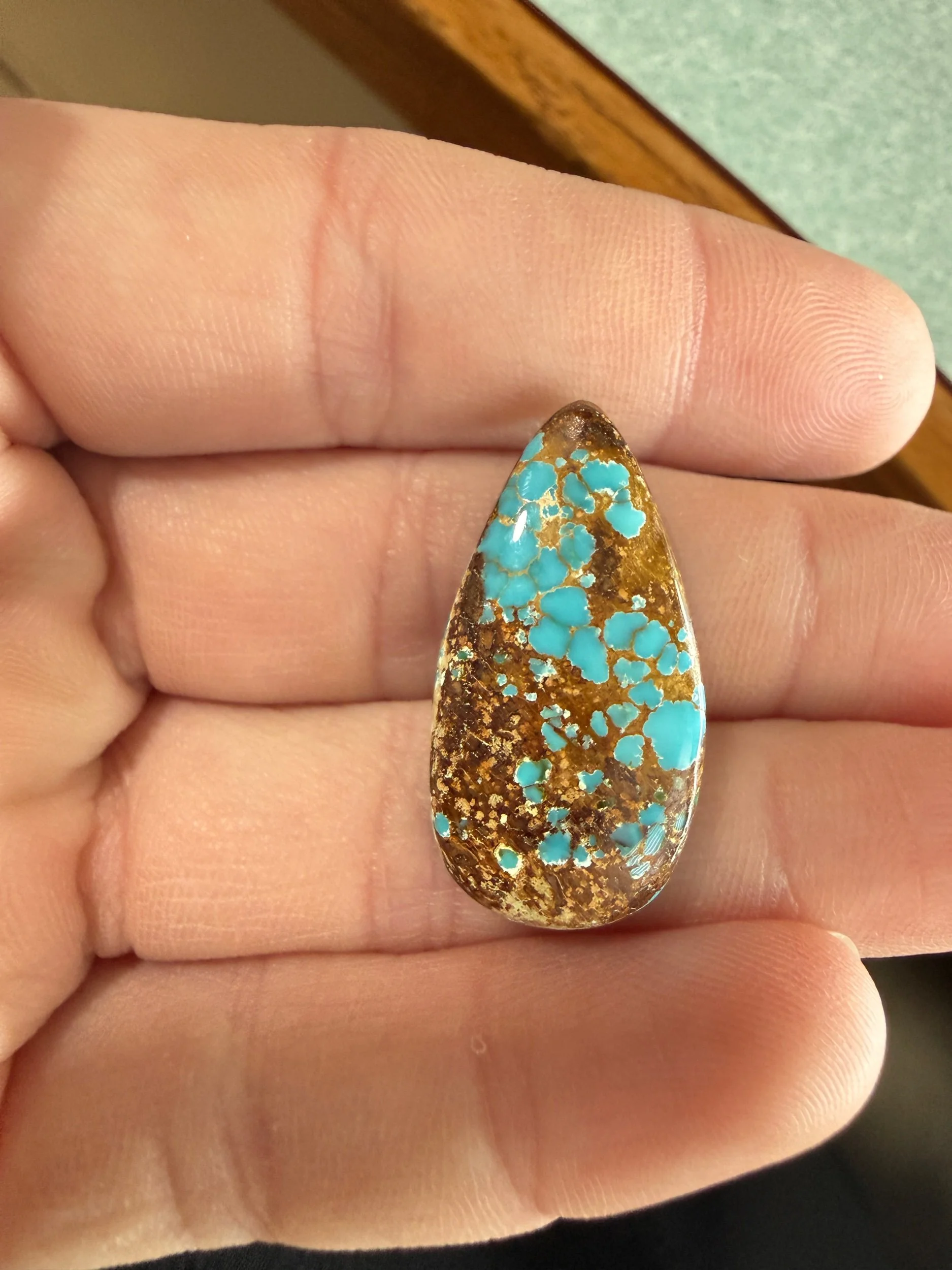 Shop › Royston Turquoise TC#115 Image 1 of 3 Image 2 of 3 Image 3 of 3 Royston Turquoise TC#115 $40.00 Natural Royston Turquoise cabochon. Backed with black epoxy and ready to be set in jewelry. Weight 20 carats. Add To Cart Added! Natural Royston Turquoise cabochon. Backed with black epoxy and ready to be set in jewelry. Weight 20 carats.