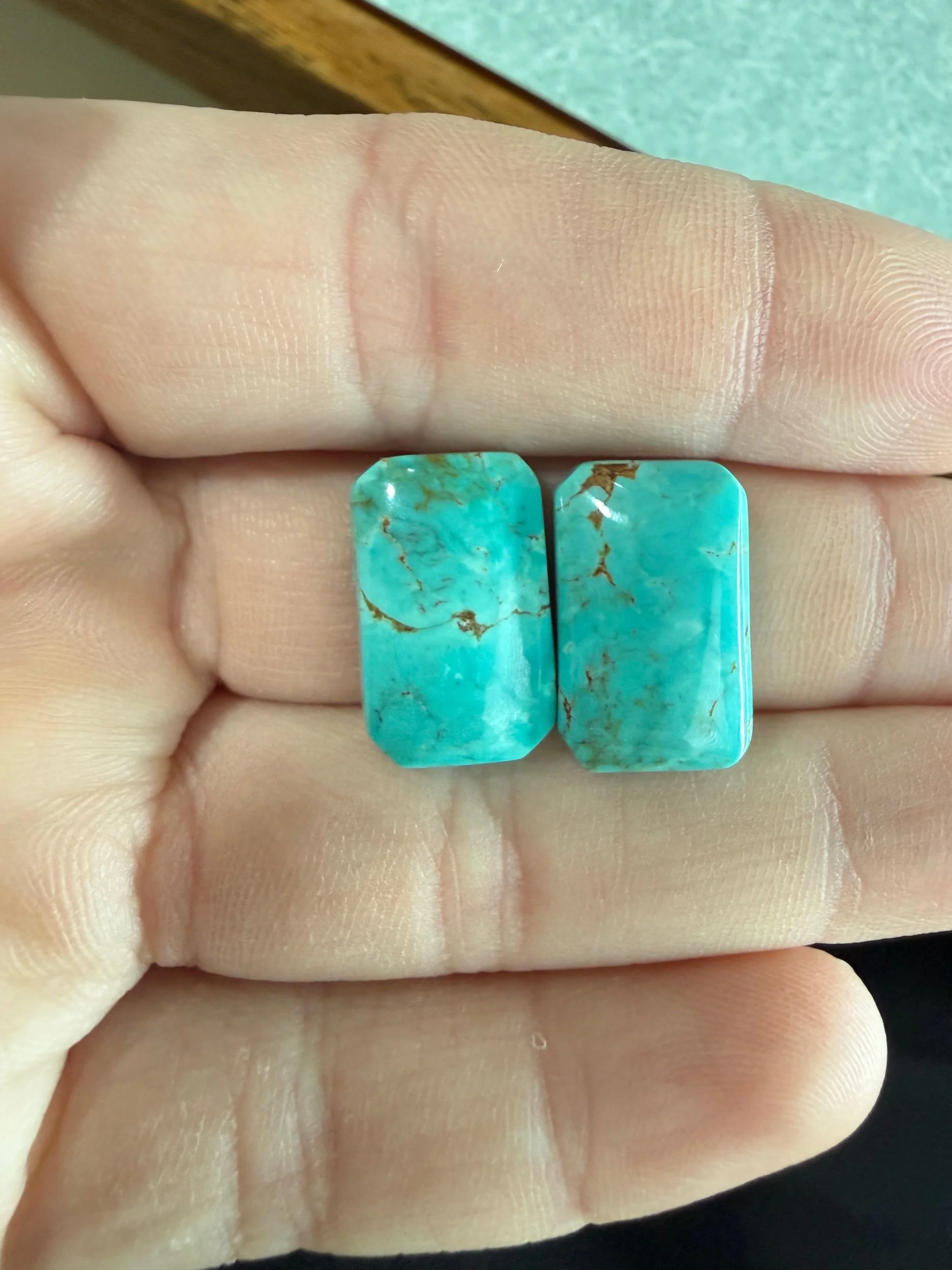Shop › Chilean Turquoise TC#37 Image 1 of 3 Image 2 of 3 Image 3 of 3 Chilean Turquoise TC#37 $40.00 Stabilized Chilean turquoise cabochon pair. This particular pair is not backed with epoxy. Weight 19 carats. Add To Cart Added! Stabilized Chilean turquoise cabochon pair. This particular pair is not backed with epoxy. Weight 19 carats.