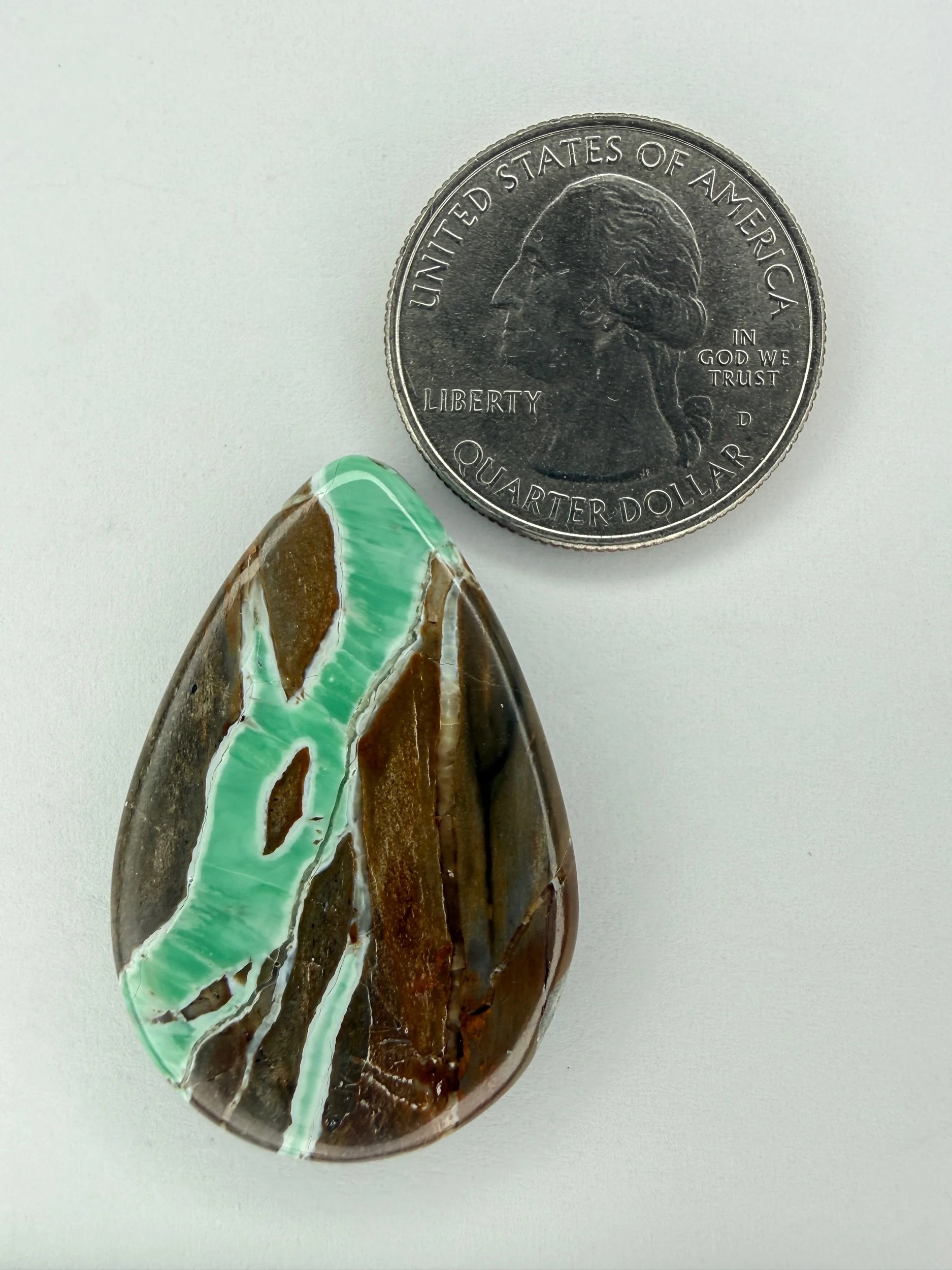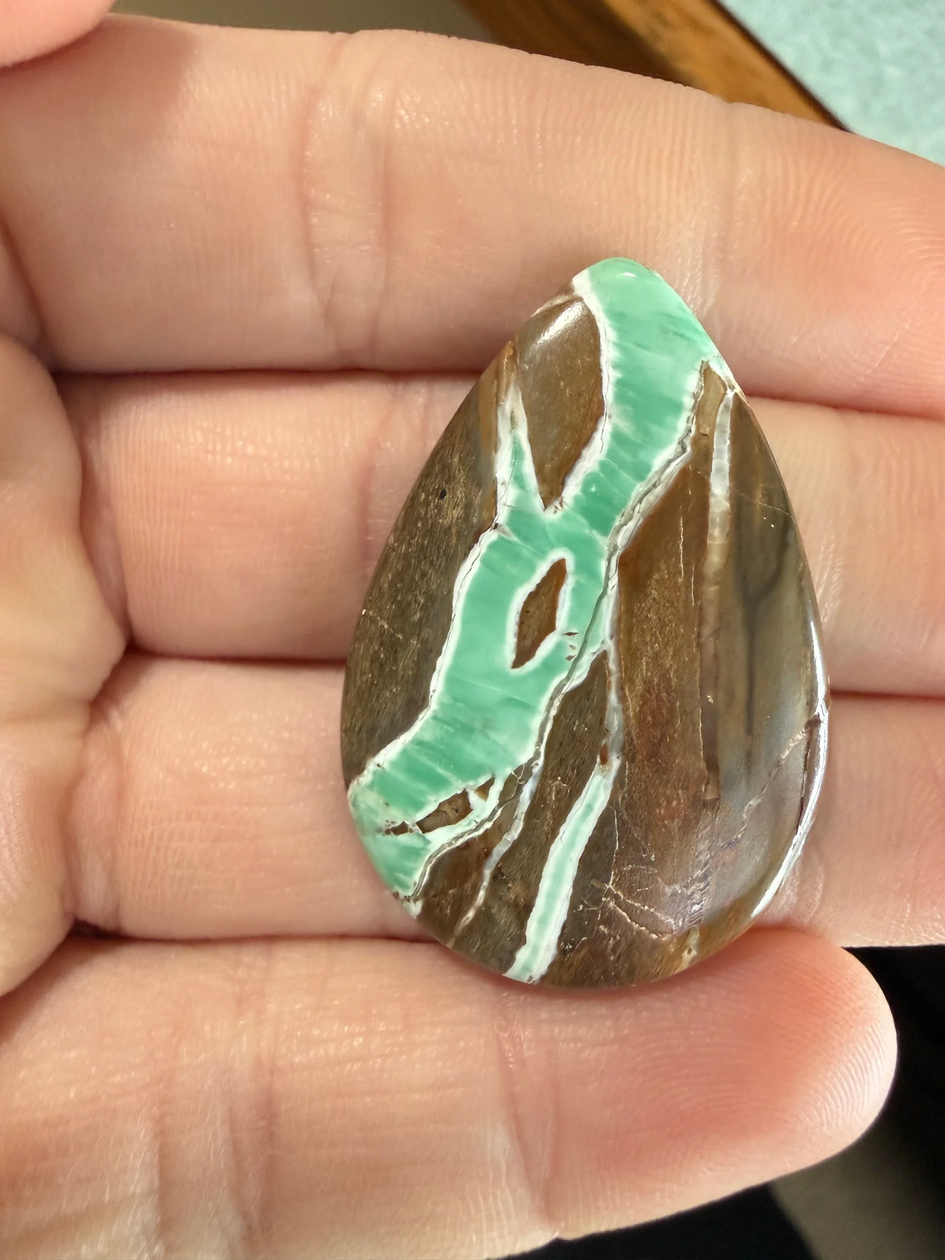 Shop › Australian Variscite TC#199 Image 1 of 3 Image 2 of 3 Image 3 of 3 Australian Variscite TC#199 $65.00 Stabilized Australian variscite cabochon. Backed with black epoxy and ready to be set in jewelry. Weight 33 carats. Add To Cart Added! Stabilized Australian variscite cabochon. Backed with black epoxy and ready to be set in jewelry. Weight 33 carats.